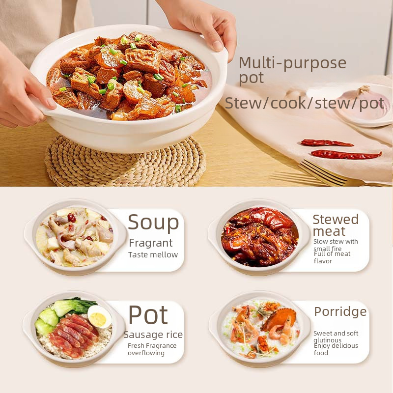 | nameOriginal | Casserole gas stove stew soup household ceramic old-fashioned clay casserole shallow pot high temperature resistant dry burning casserole ceramic casserole |