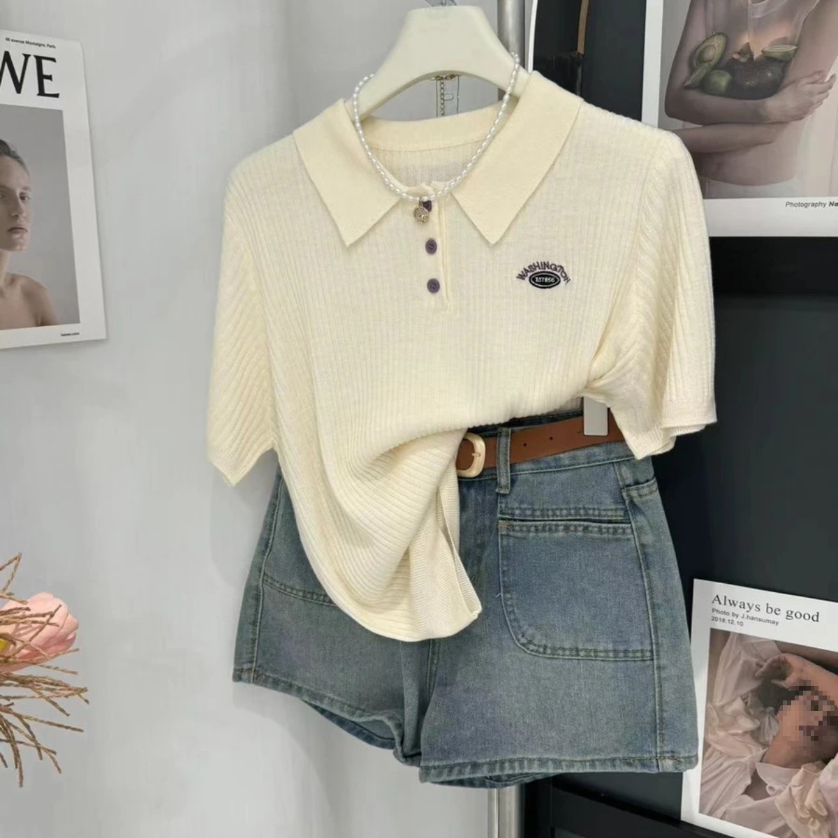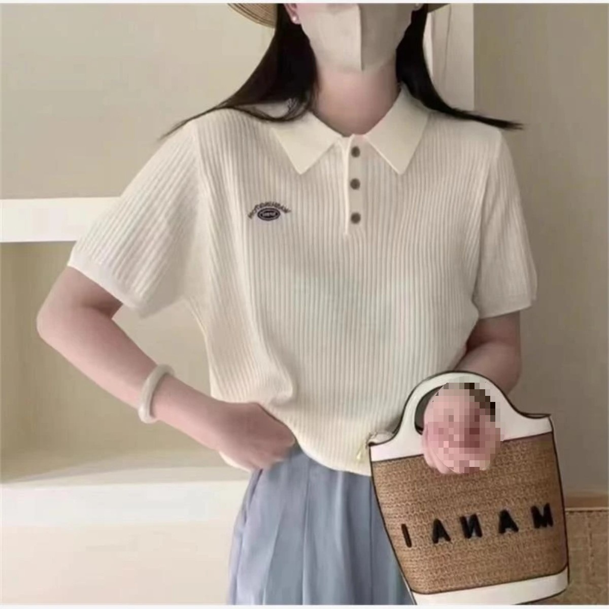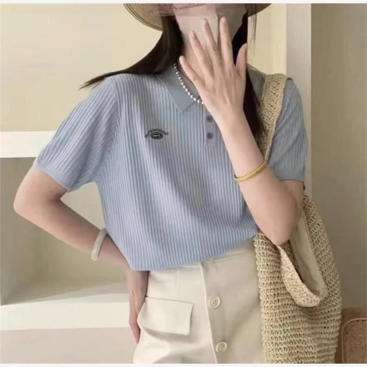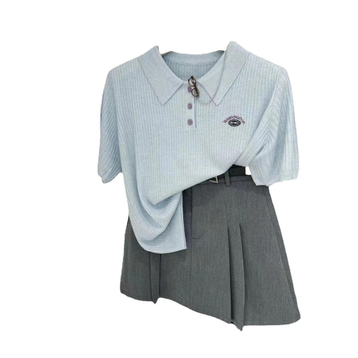 Casual All-match Short-sleeved Sweater 2024 Summer New Fashion Embroidered Letter Polo Collar Short-sleeved Pullover