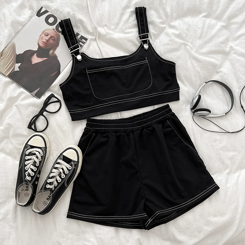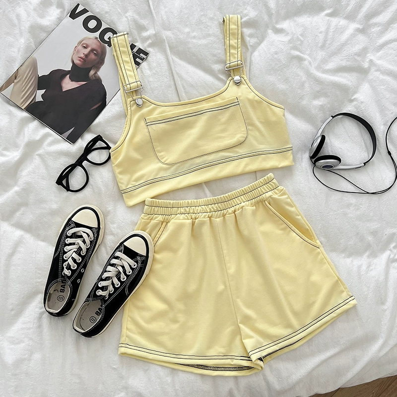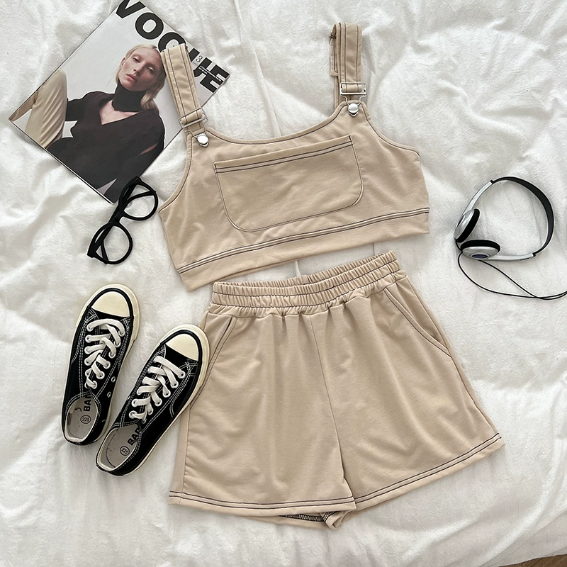 | nameOriginal | Casual and versatile short elastic waist sweatpants suspenders |