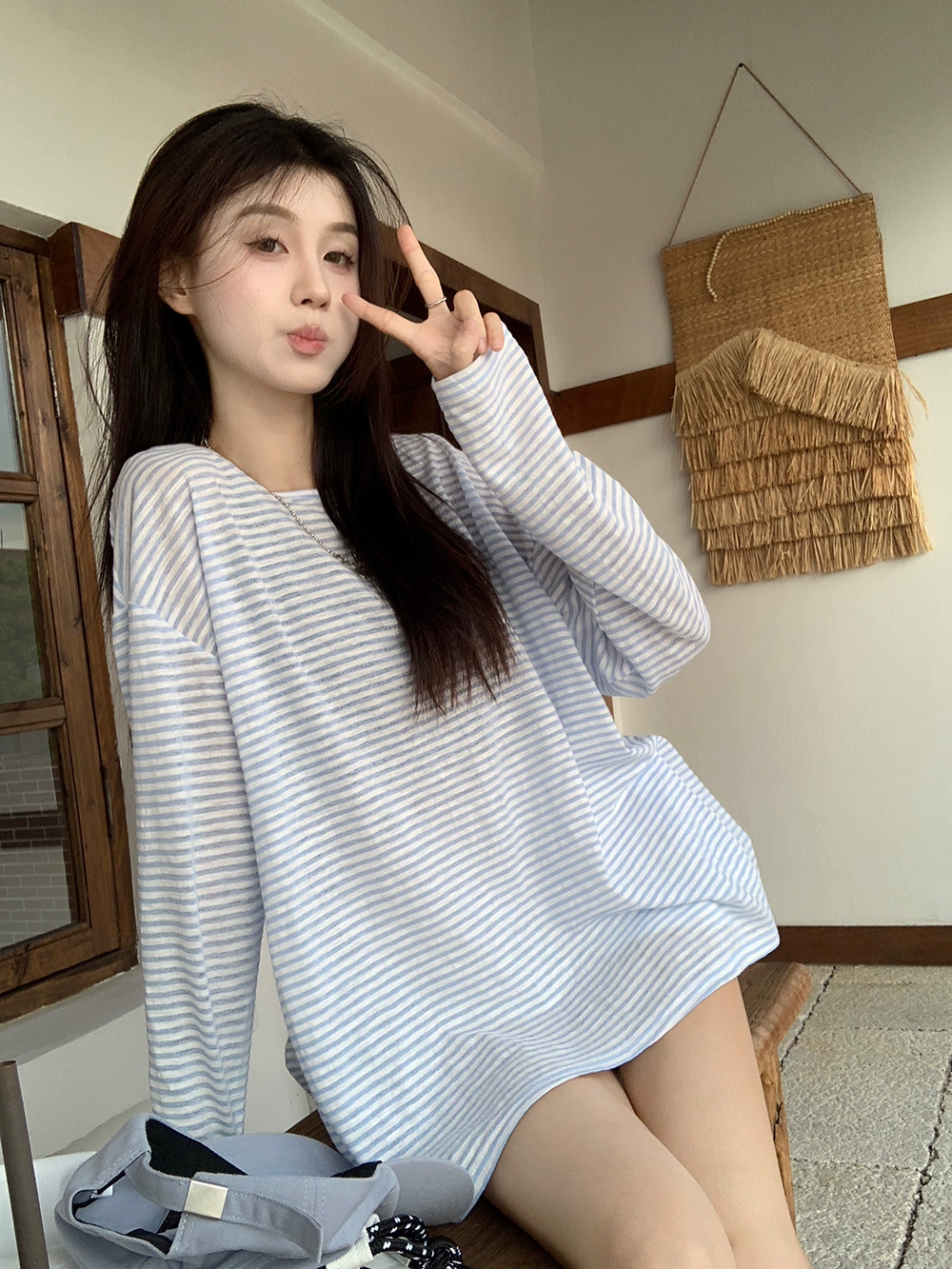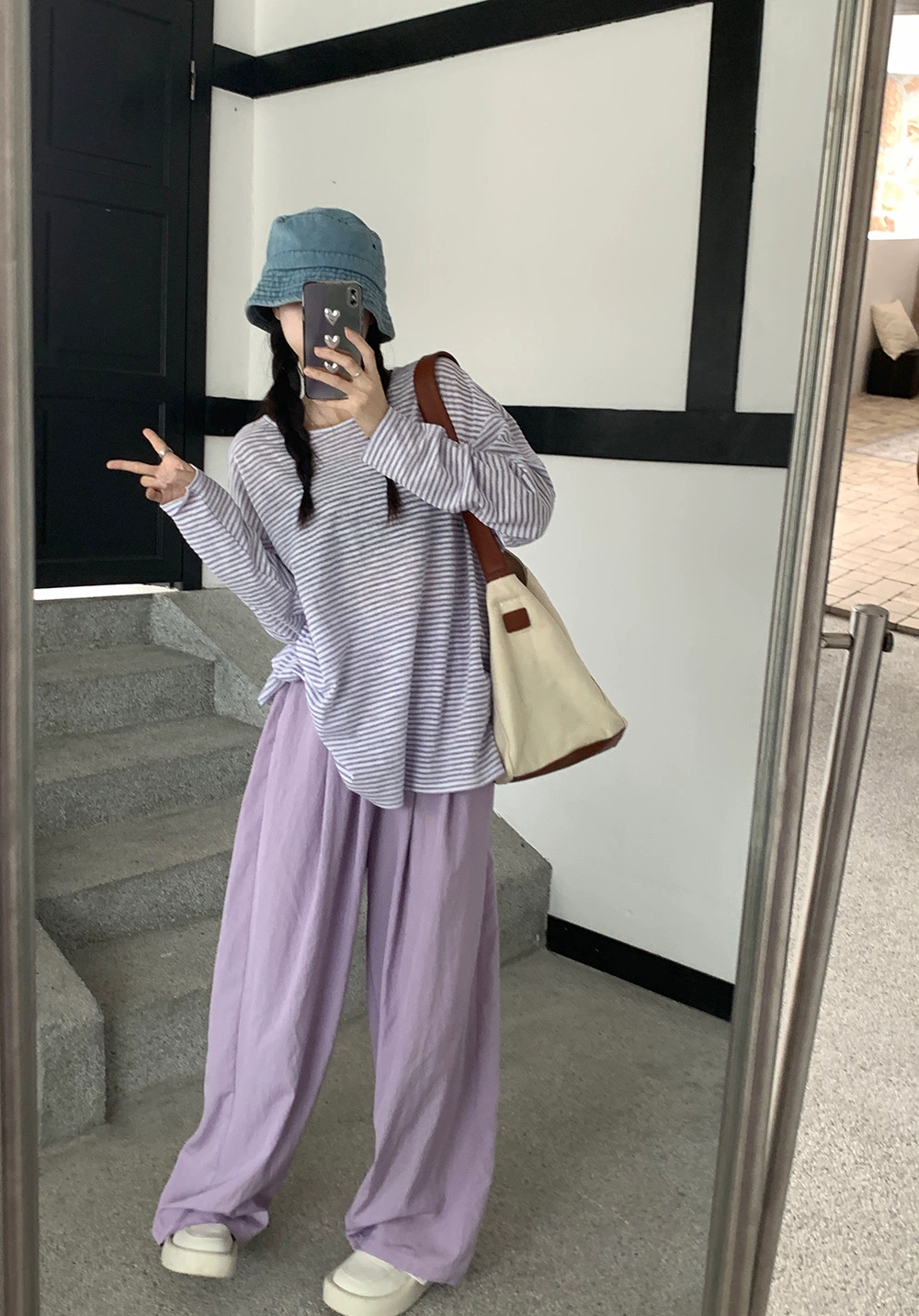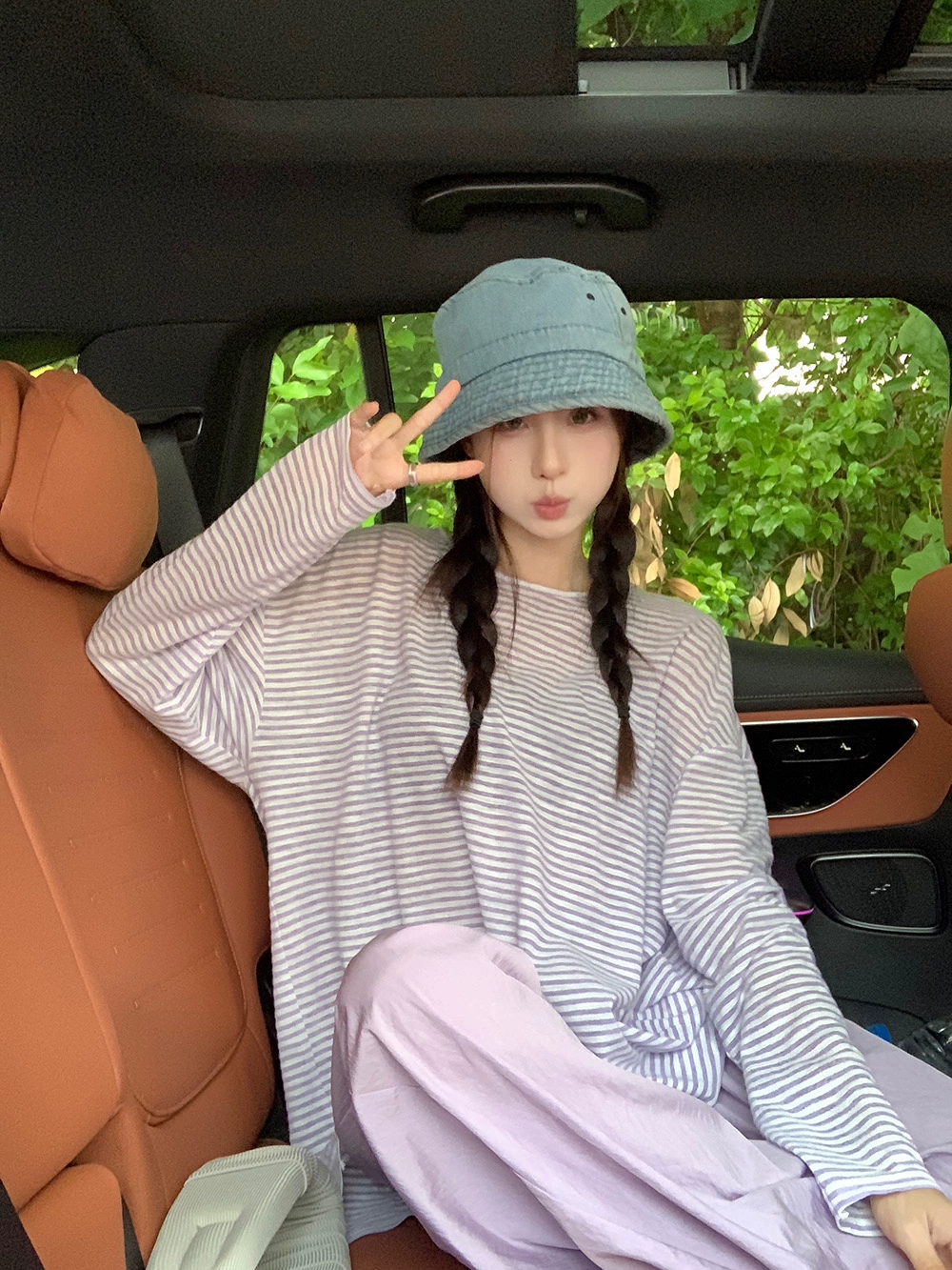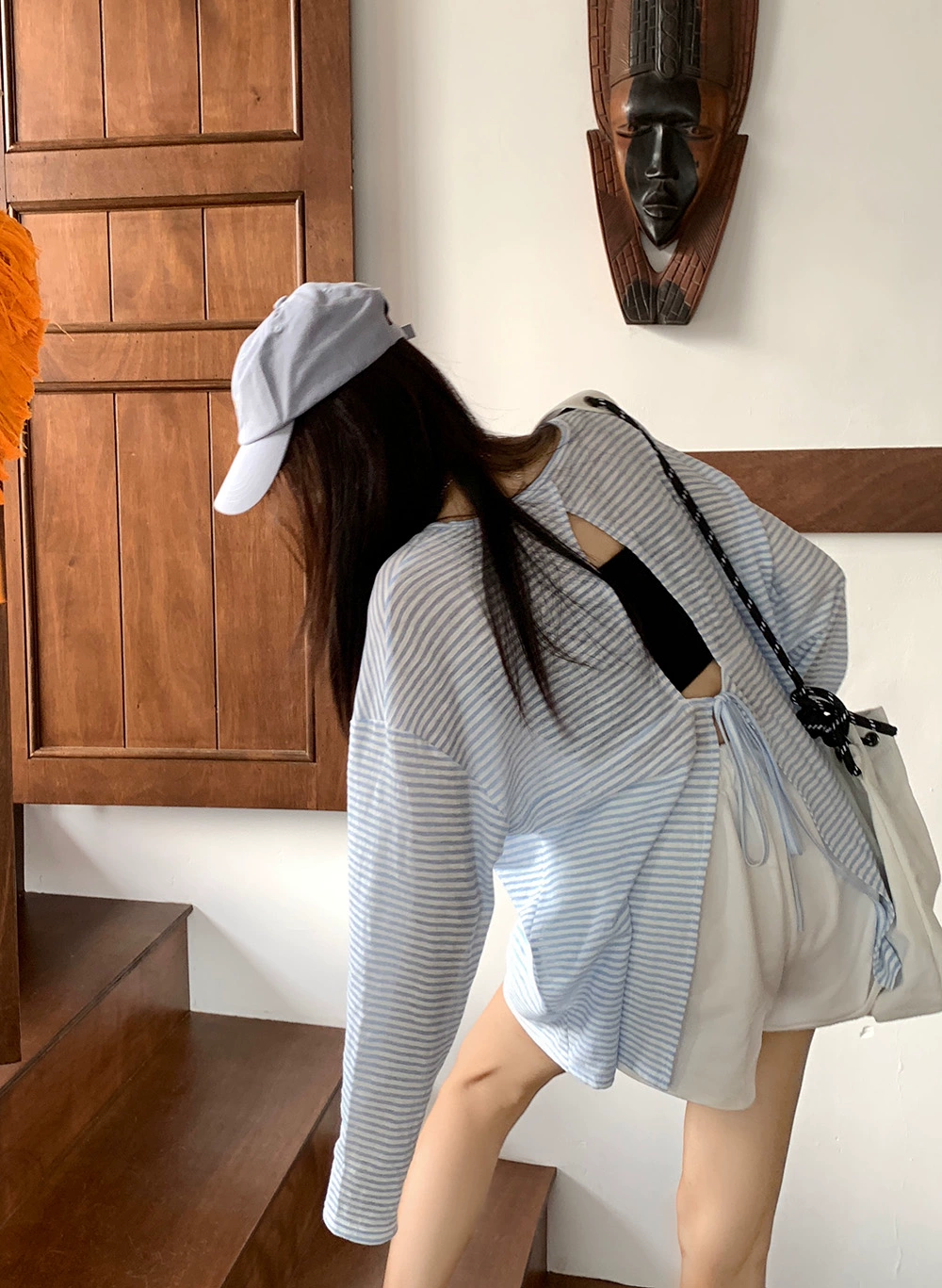 | nameOriginal | Casual backless striped sun protection purple Korean style T-shirt |