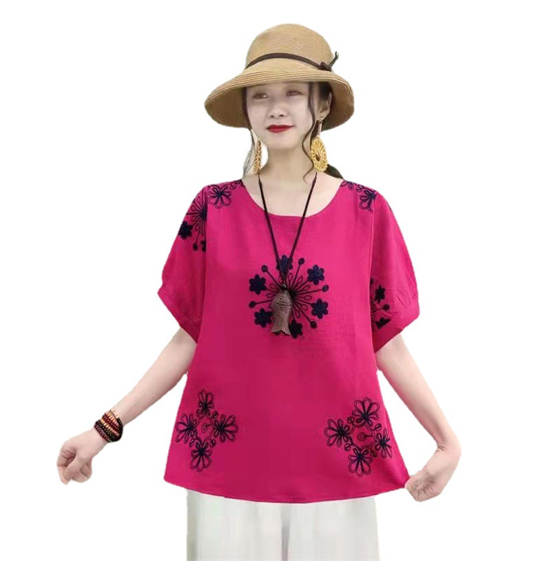 | nameOriginal | Casual Cotton Linen Pullover Slimming Ethnic Style Embroidered Flower Lantern Sleeve All-Match Travel Top Women's Blouse |