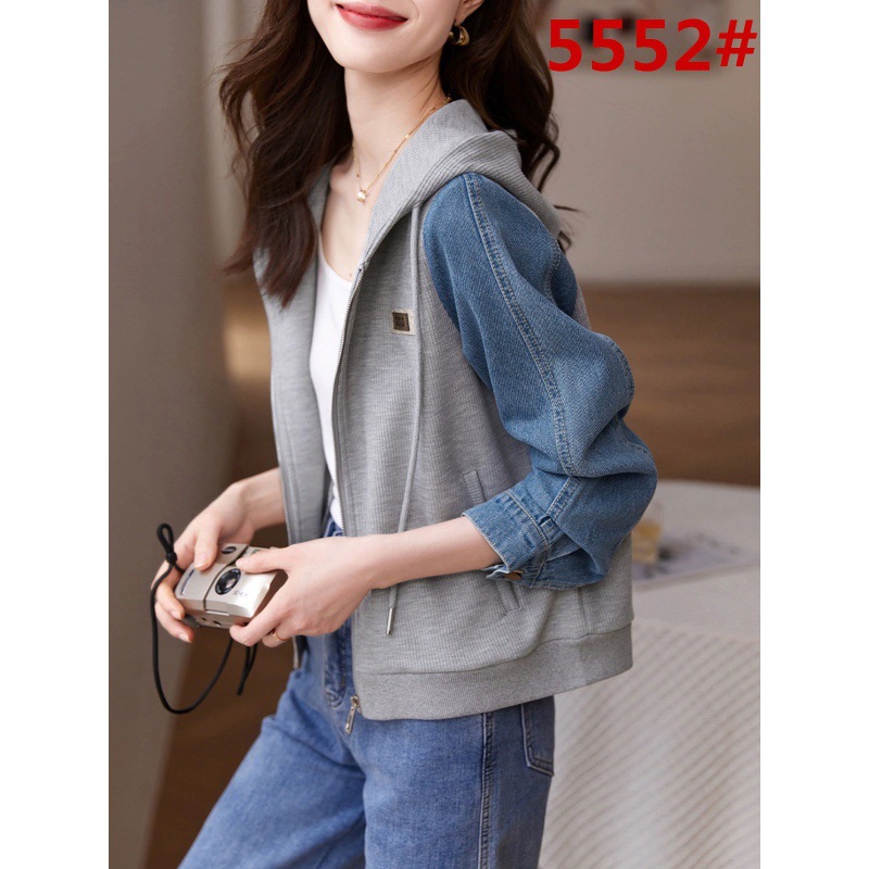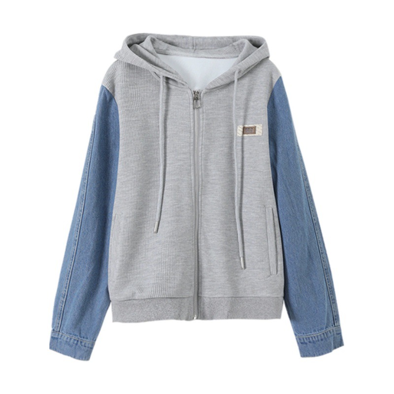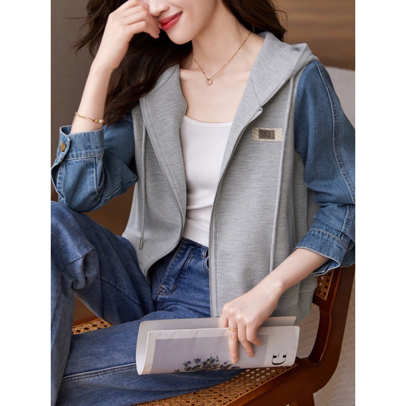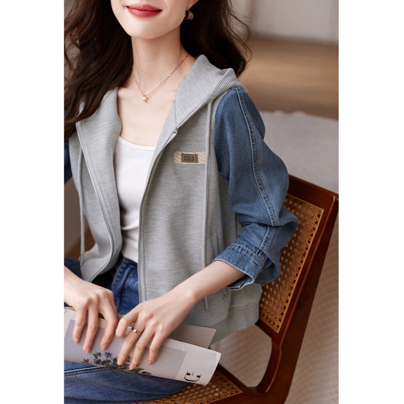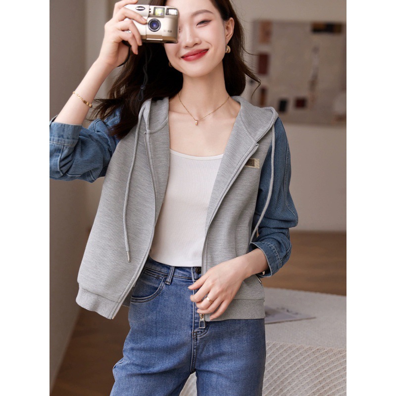 | nameOriginal | Casual Denim Stitching Jacket for 23 Years Summer and Autumn Mogo Fish Yuan Created New Drawstring Hooded Textile Joker Jacket for Women |