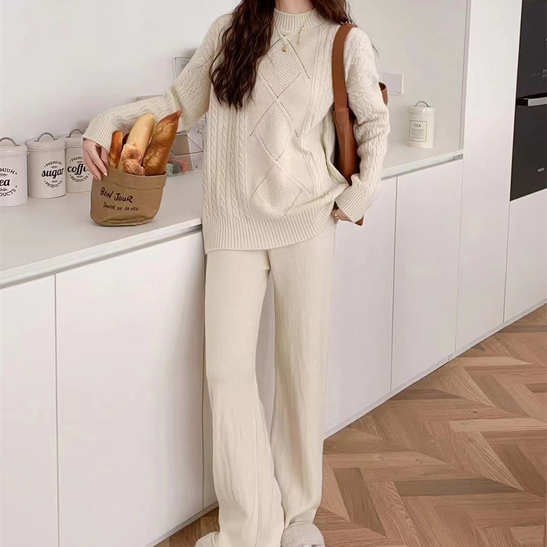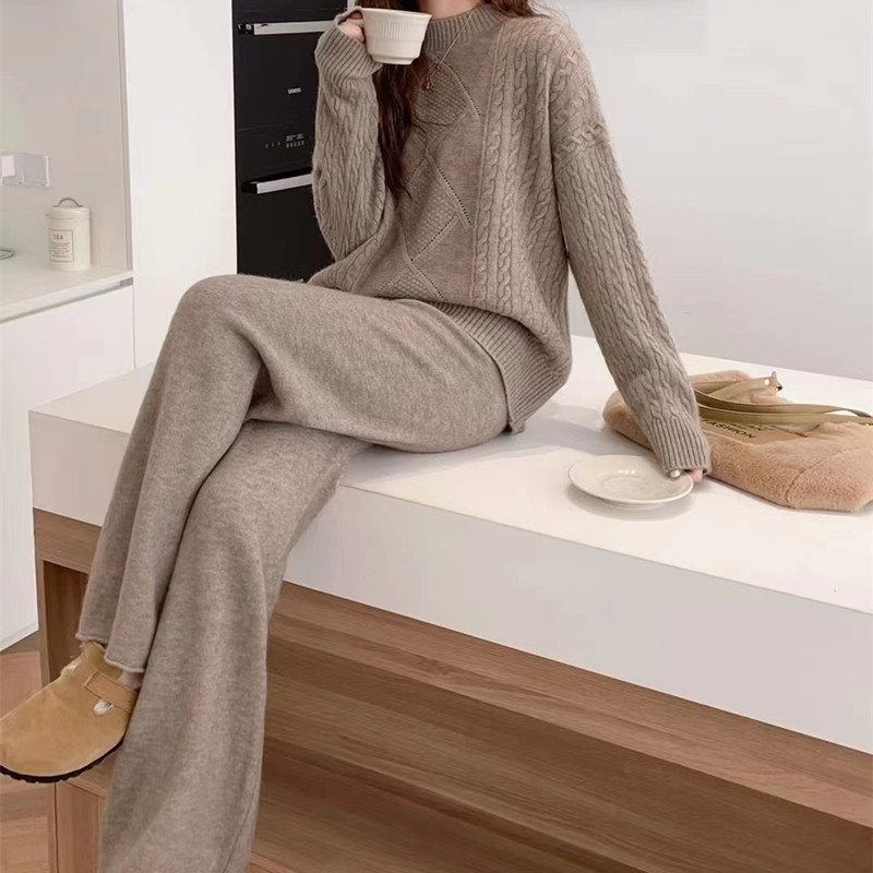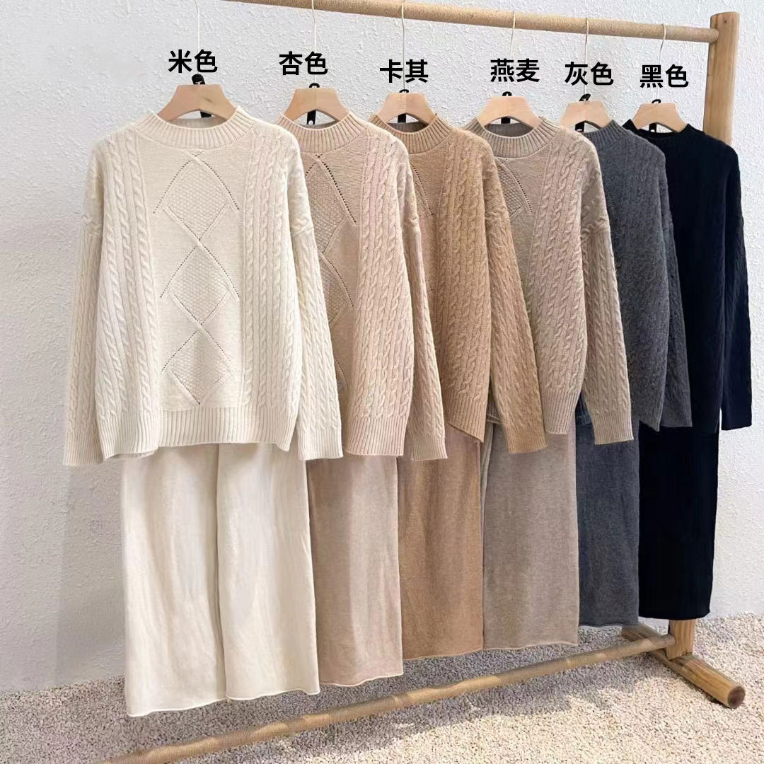 | nameOriginal | Casual fashion lazy style suit new women's milk series wear winter a set of sweater knitted wide-leg pants two-piece set |