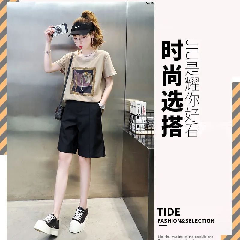 | nameOriginal | Casual fashion suit women's wide-leg shorts cropped pants Western style small two-piece suit trendy summer 2023 New |