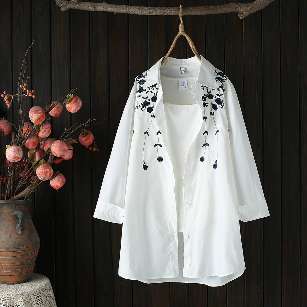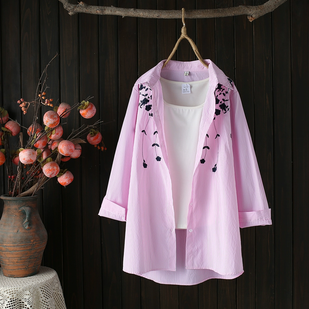 | nameOriginal | Casual fat mm flower embroidered striped shirt art |