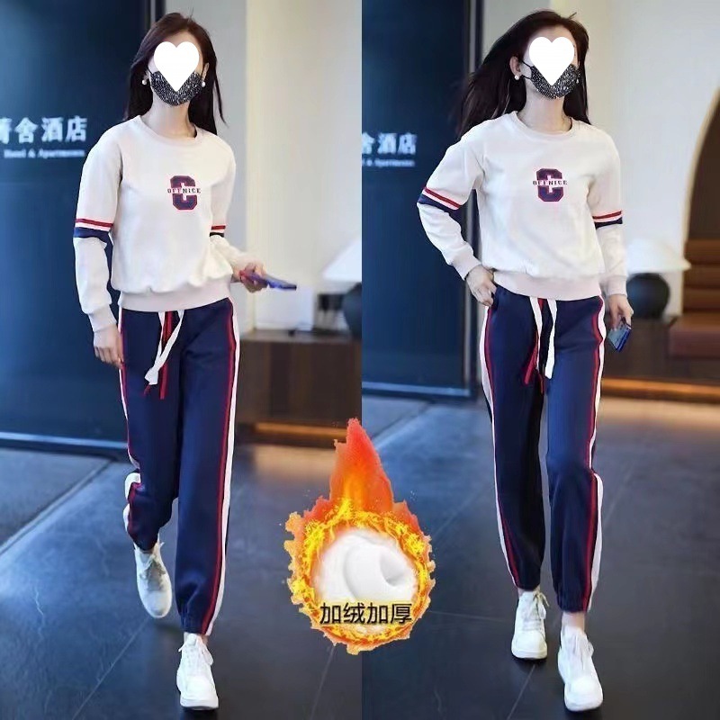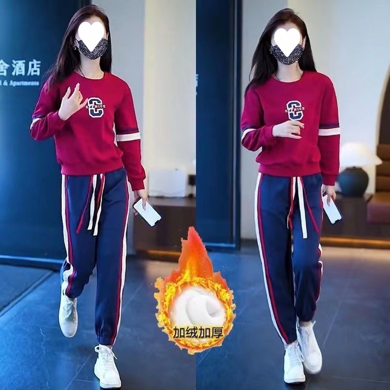 | nameOriginal | Casual fleece-lined suit for women 2024 Autumn New Fashion loose slimming sweater sweatpants sports two-piece suit |
