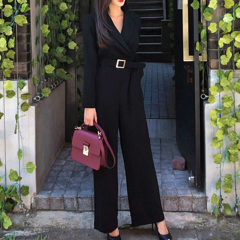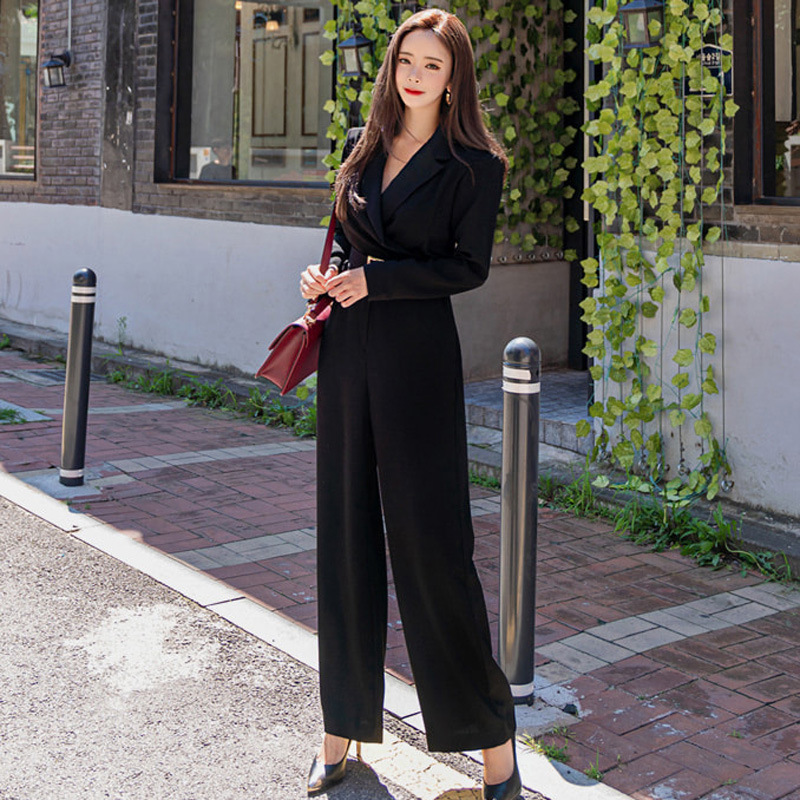 | nameOriginal | Casual Jumpsuit Women's 2022 Autumn New Korean Style Fashion Straight Leg Pants Tight Waist Long Sleeve V-Neck Professional Wide Leg Pants |