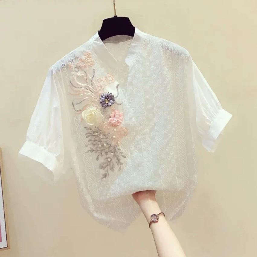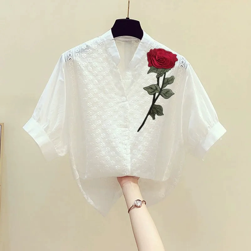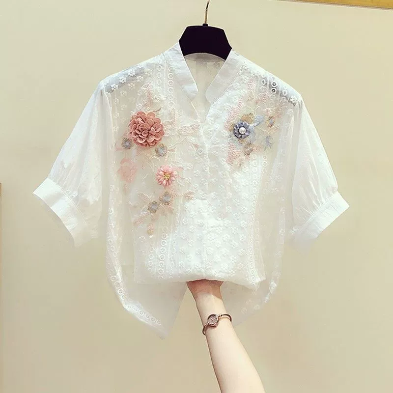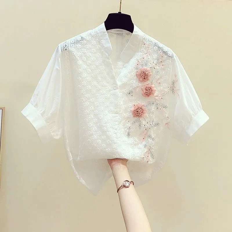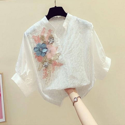 | nameOriginal | Casual Korean style embroidered flower pure cotton shirt short sleeves |