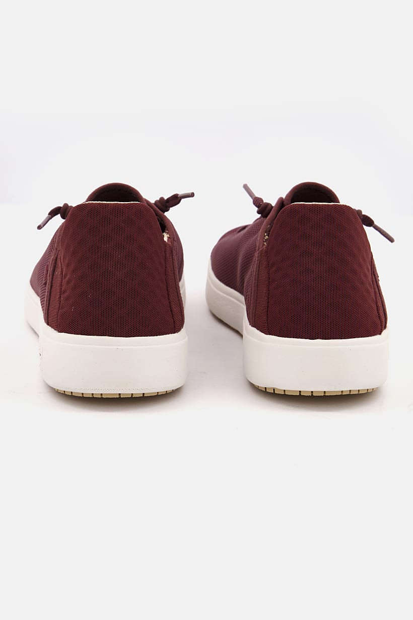 This product is suitable for men and comes with a standard lace-up closure. The insole is lightly padded for added comfort, while the rubber sole provides durability. The closed-toe design and mesh textile material make it perfect for casual occasions. Please note that the product color may vary slightly due to lighting or monitor settings. The color family of this product is maroon.
