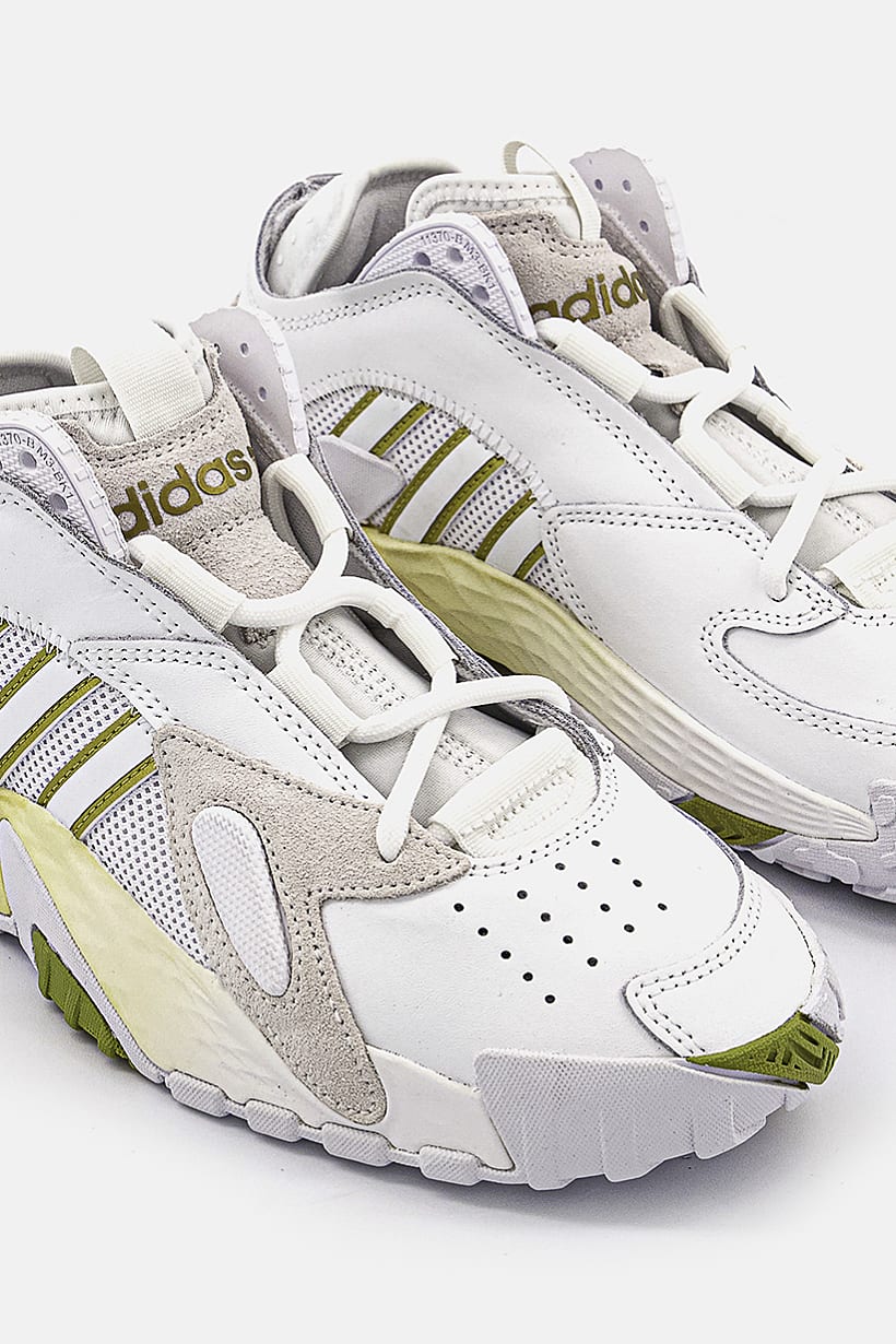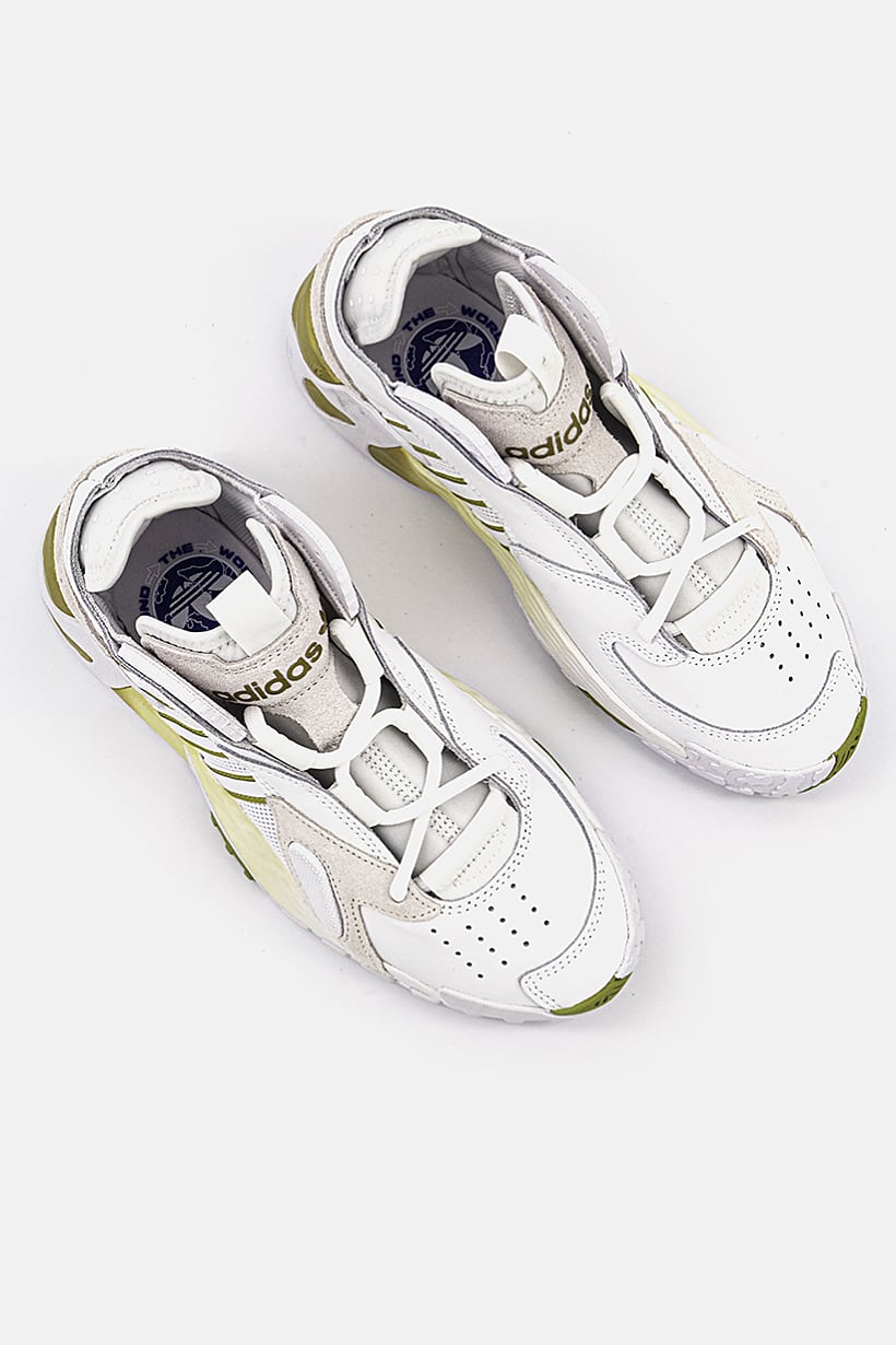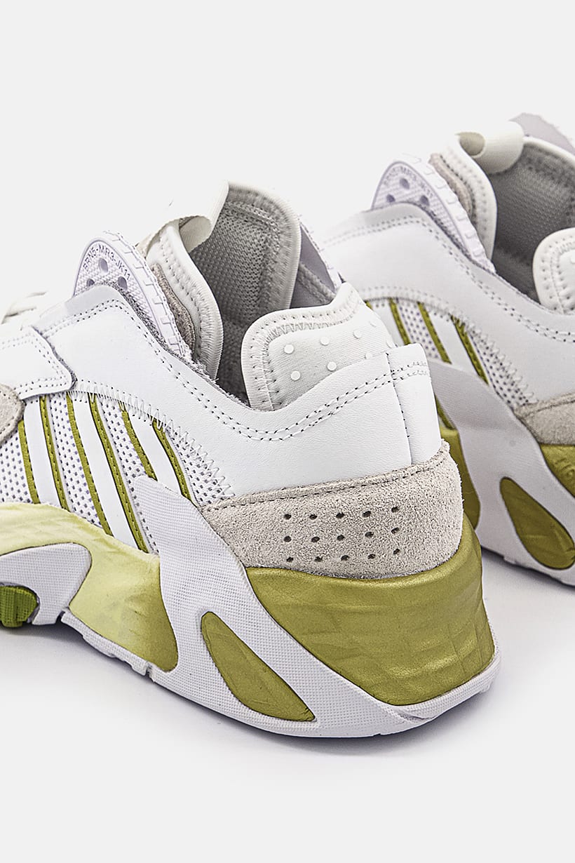 Casual lace-up shoes for women with a streetball design in white, gold, and olive colors.