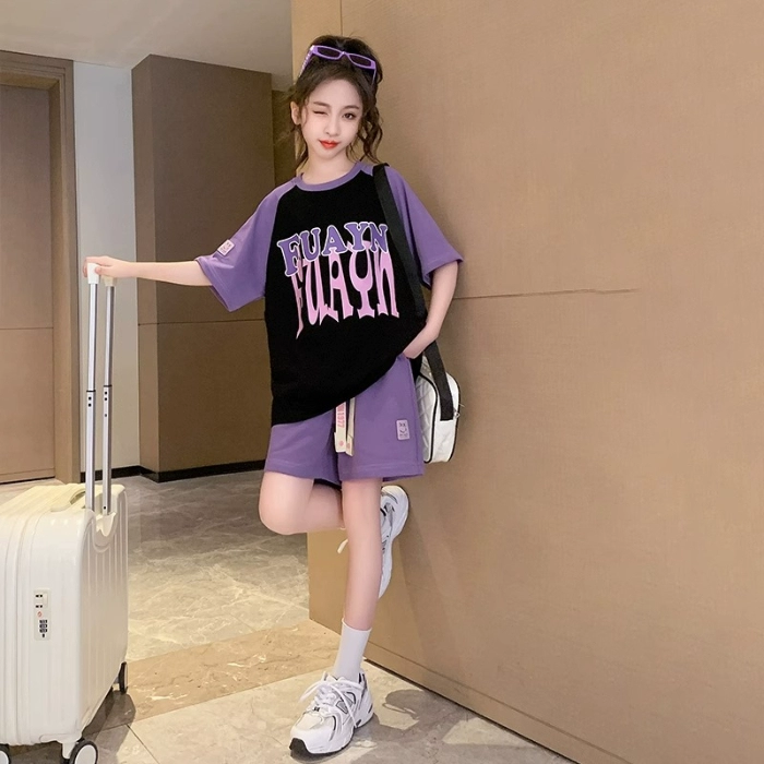 | nameOriginal | Casual loose purple letter short-sleeved T-shirt for children |