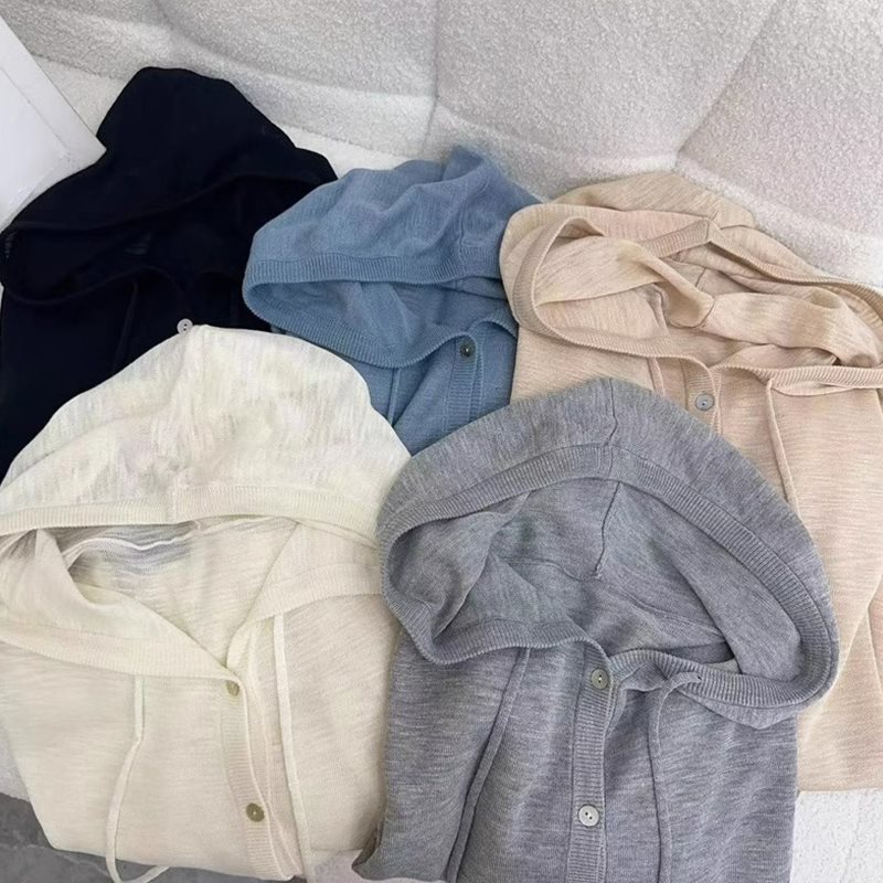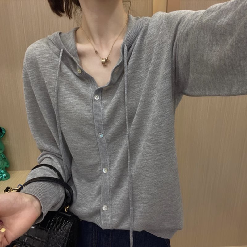 Casual Loose Single-breasted Hooded Long-sleeved Knitted Cardigan Korean-style Simple Fashionable Slimming All-match Ice Silk Sunscreen Shirt
