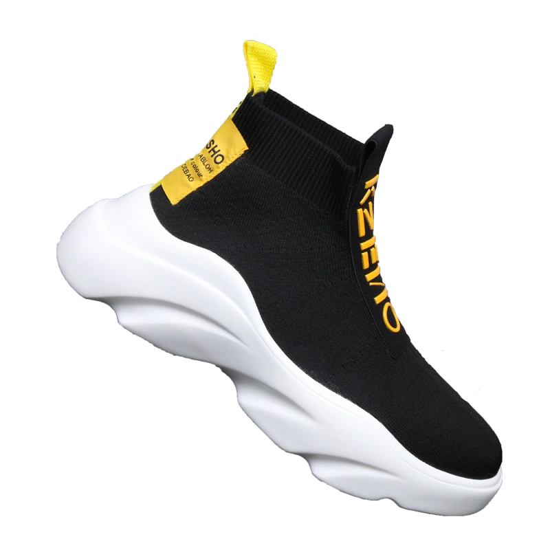 Casual men’s high-top fly knit shoes mesh breathable knitted socks shoes British youth short boots thick soles with increased height