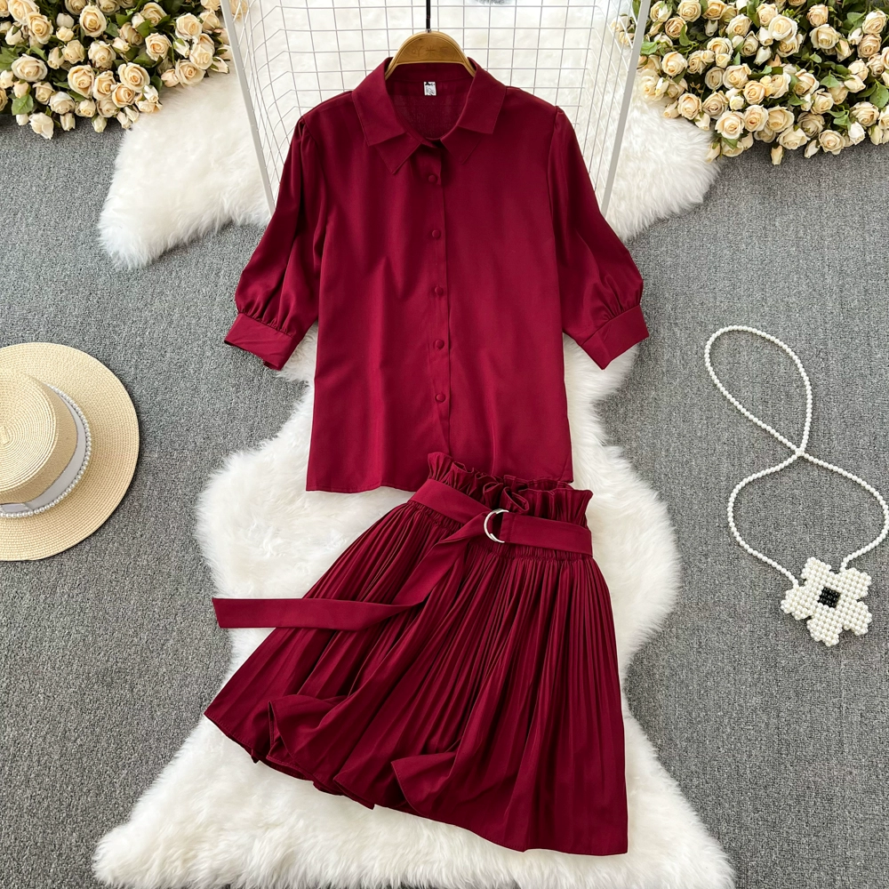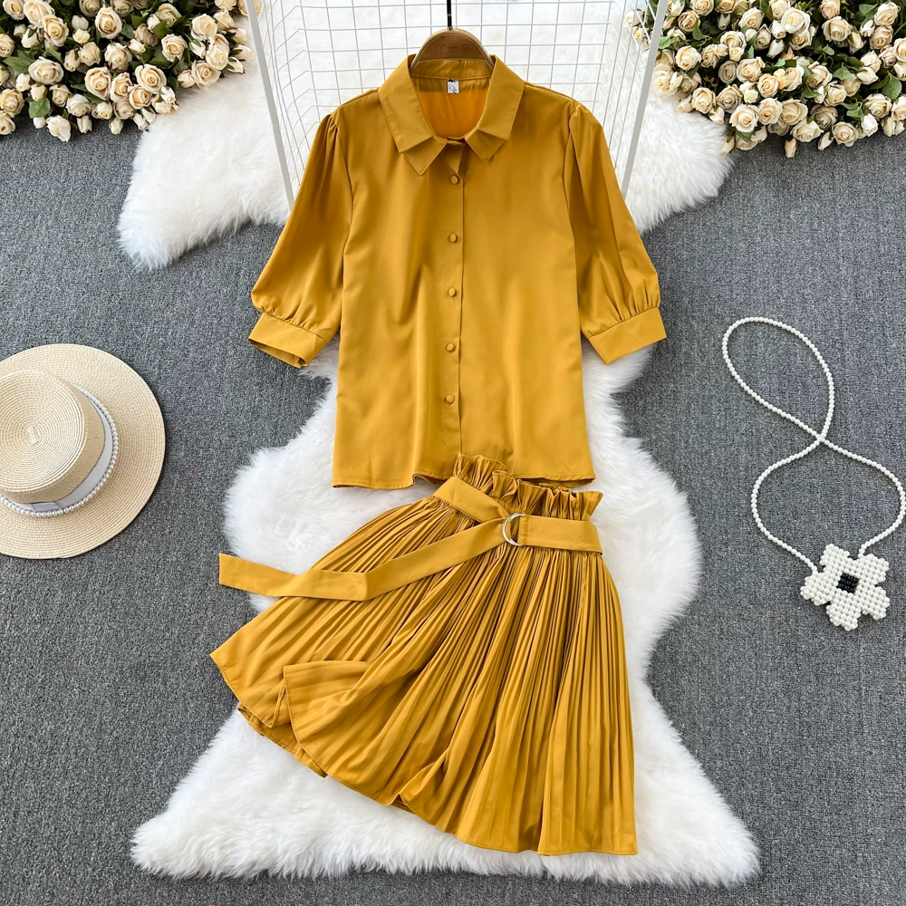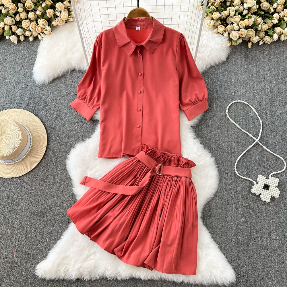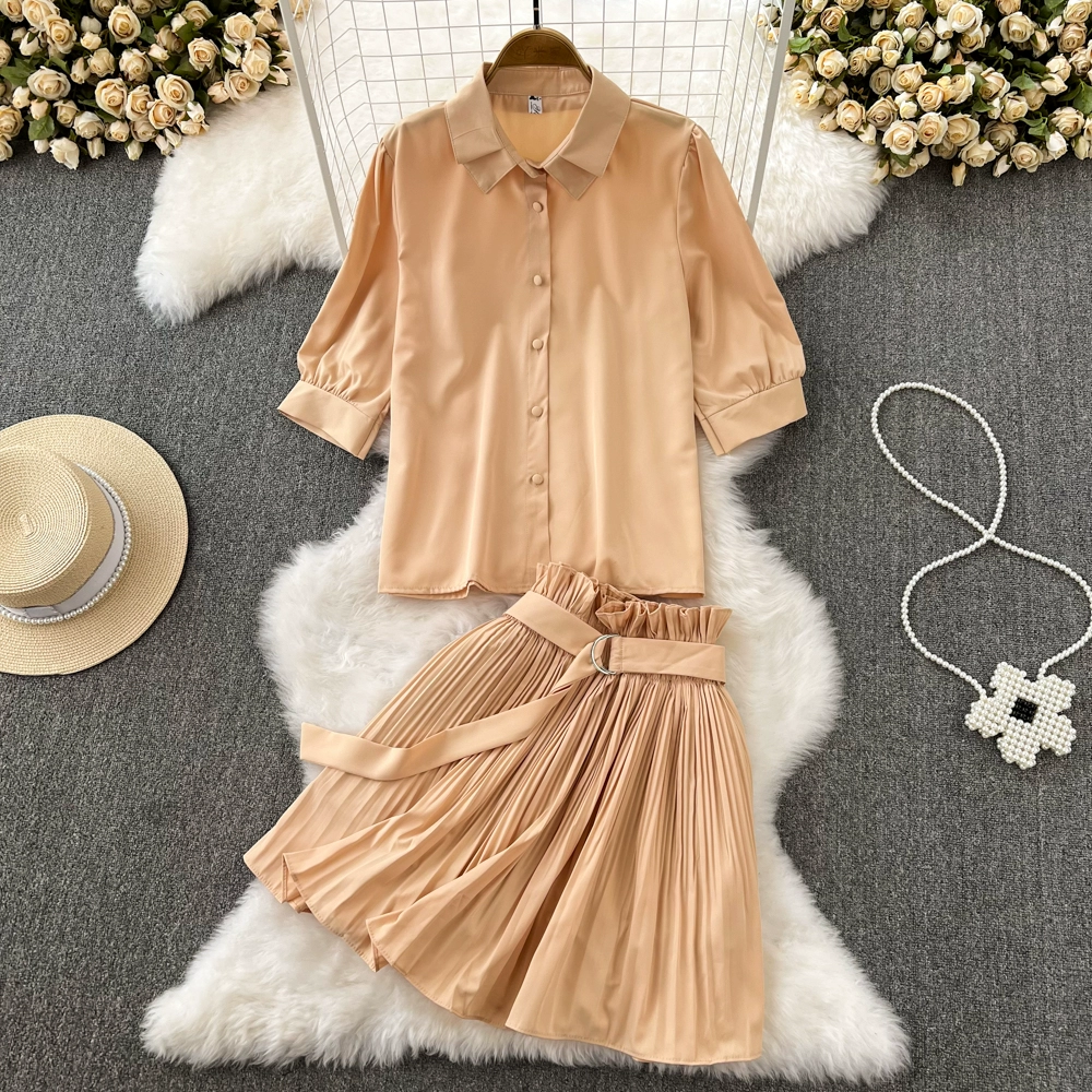 | nameOriginal | Casual POLO collar pleated skirt fashion suit |