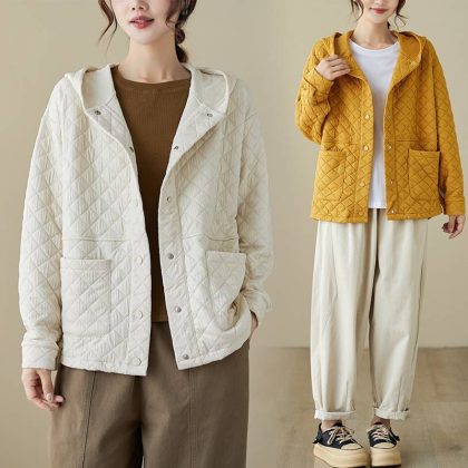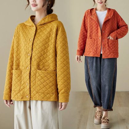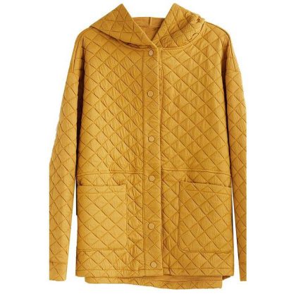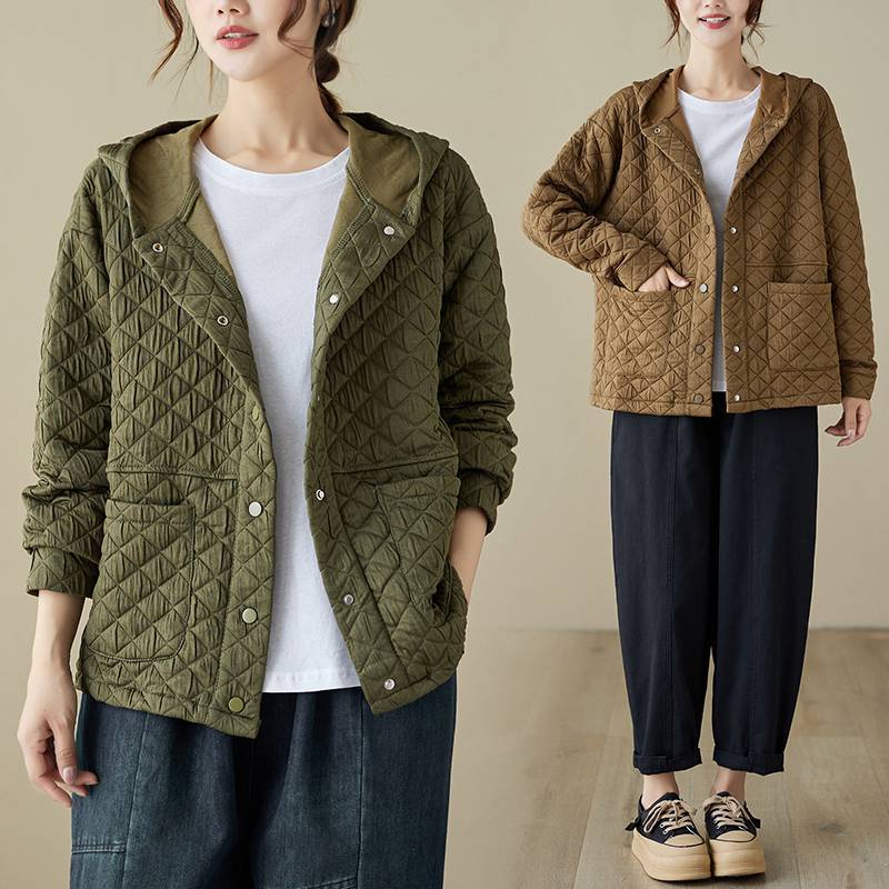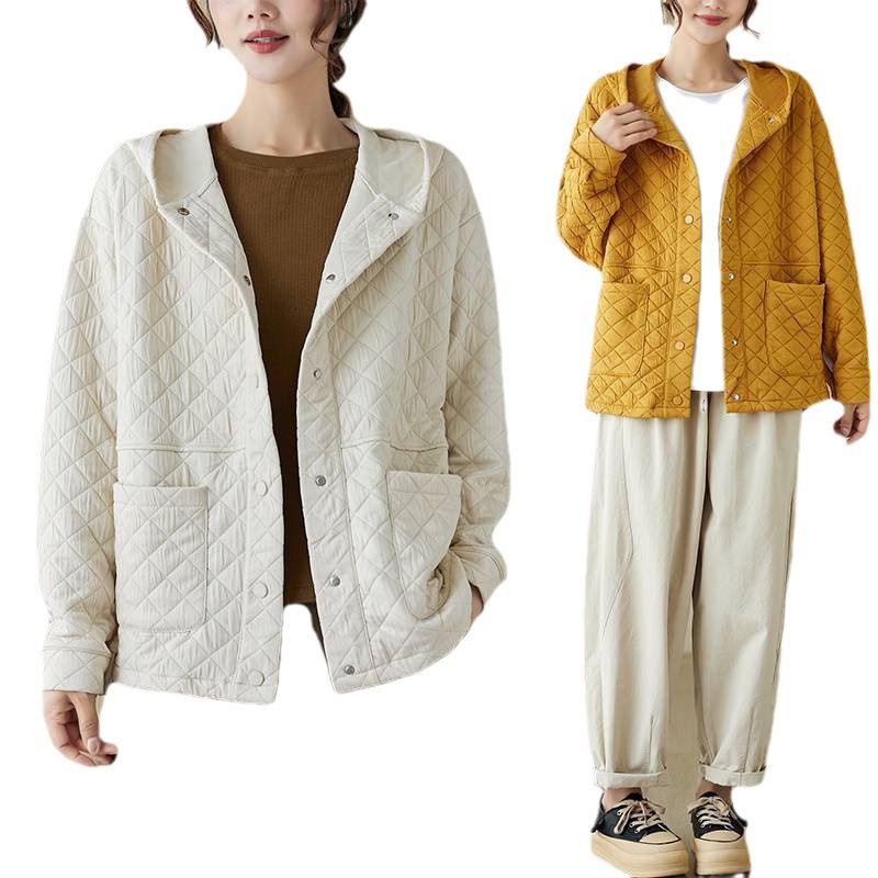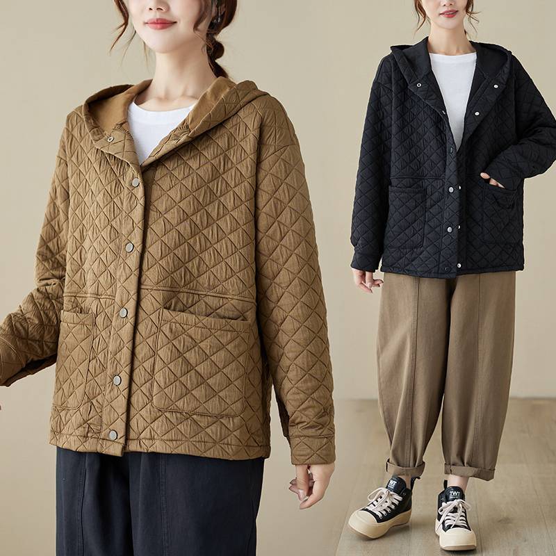 | nameOriginal | Casual rhombus plaid hooded jacket solid color cotton jacket 2023 autumn and winter women's new loose all-matching solid color baseball uniform |