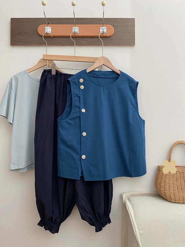 | nameOriginal | Casual round neck blue sleeveless shirt vest |