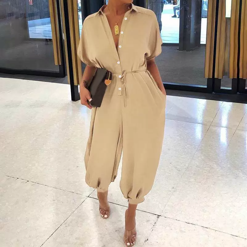 | nameOriginal | Casual short sleeve buttoned loose plus size jumpsuit |