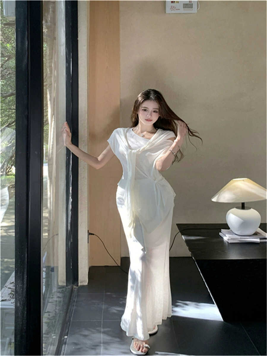 | nameOriginal | Casual short-sleeved T-shirt slit fishtail half shawl |