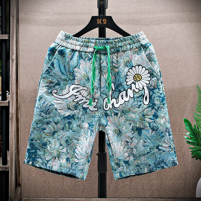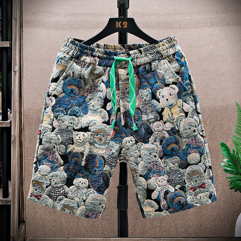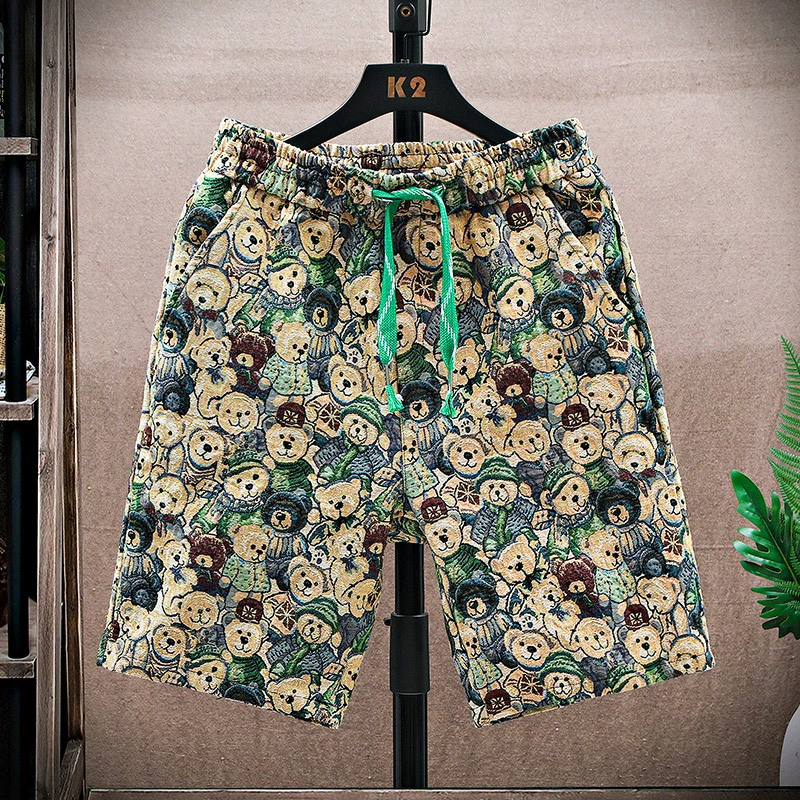 Casual shorts men's summer 2024 new style bear 3D printed thin quarter pants loose trendy brand beach pants