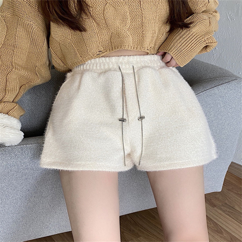 | nameOriginal | Casual Shorts Women's Autumn and Winter High Waist Small Slim-fit Loose Straight Wide Leg Pants Mink Hair Black Boots Pants |