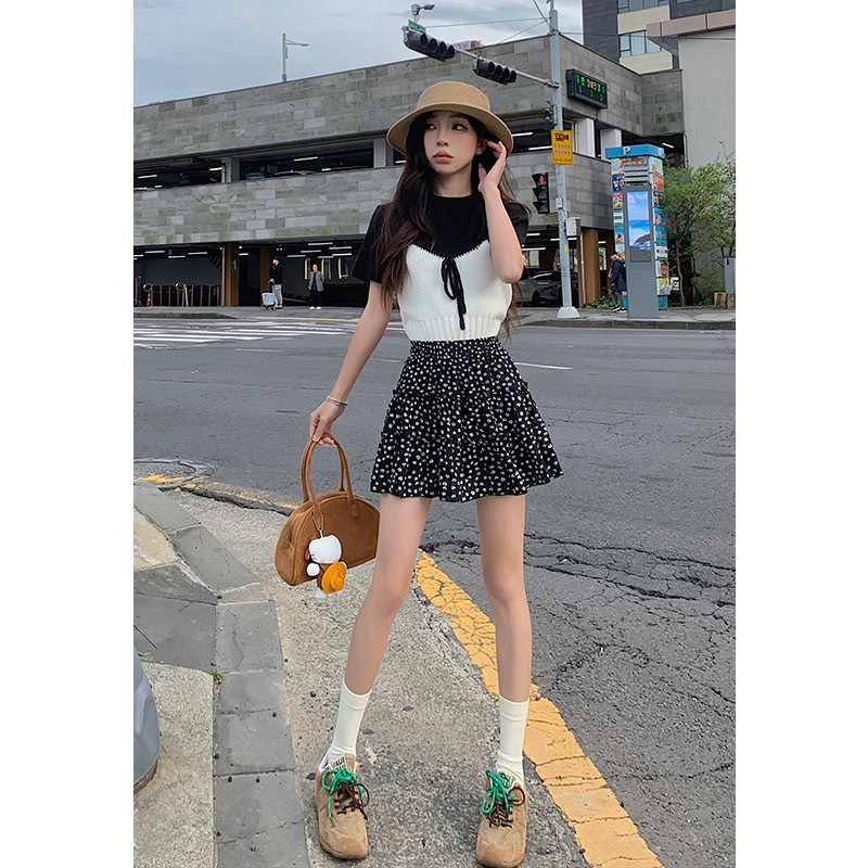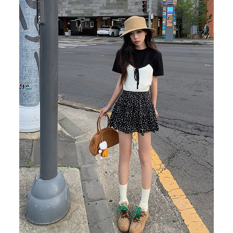 | nameOriginal | Casual Skirt Women's Summer Thin High Waist Black Floral Cake Skirt with Loose Waist A- Line Slim Look Short Skirt |
