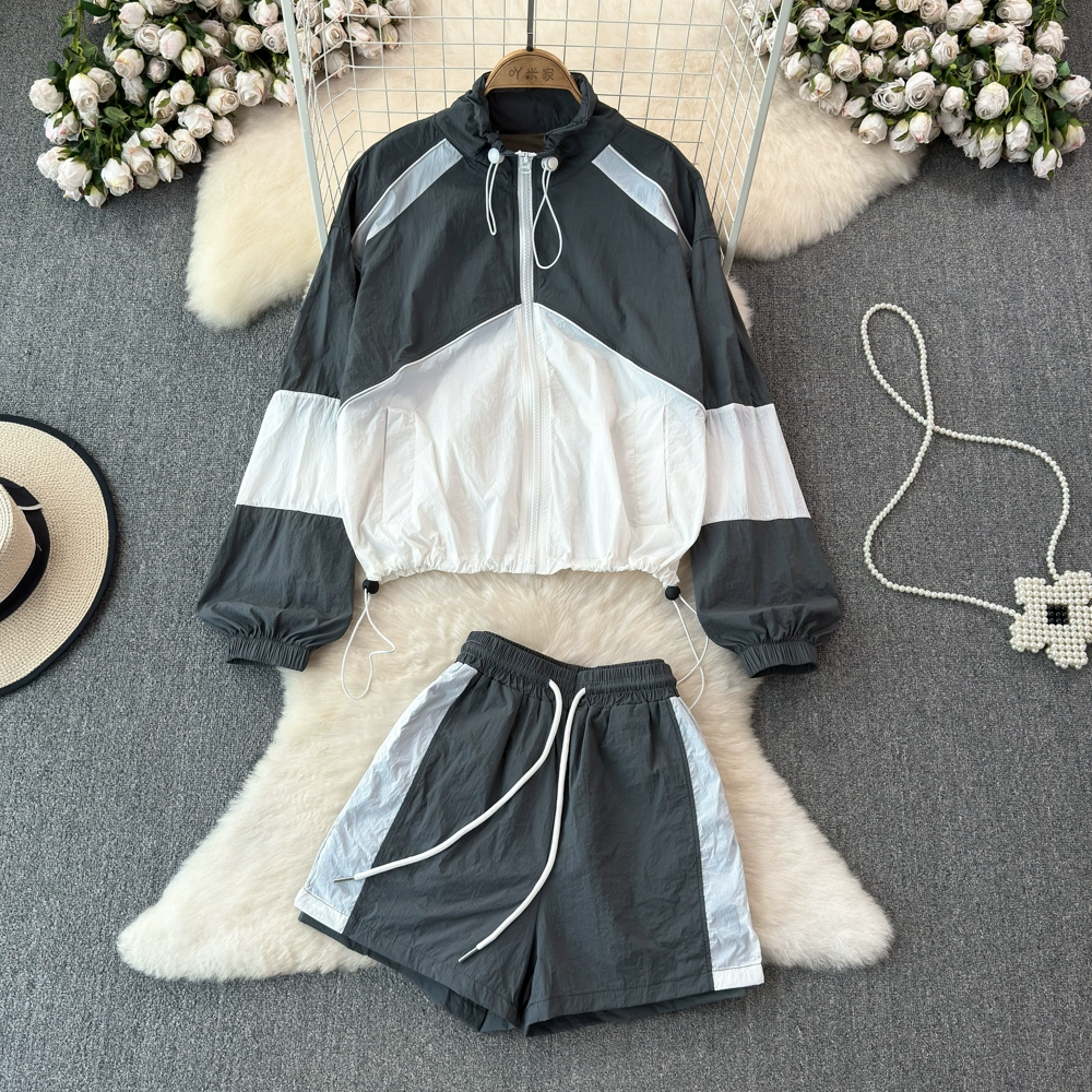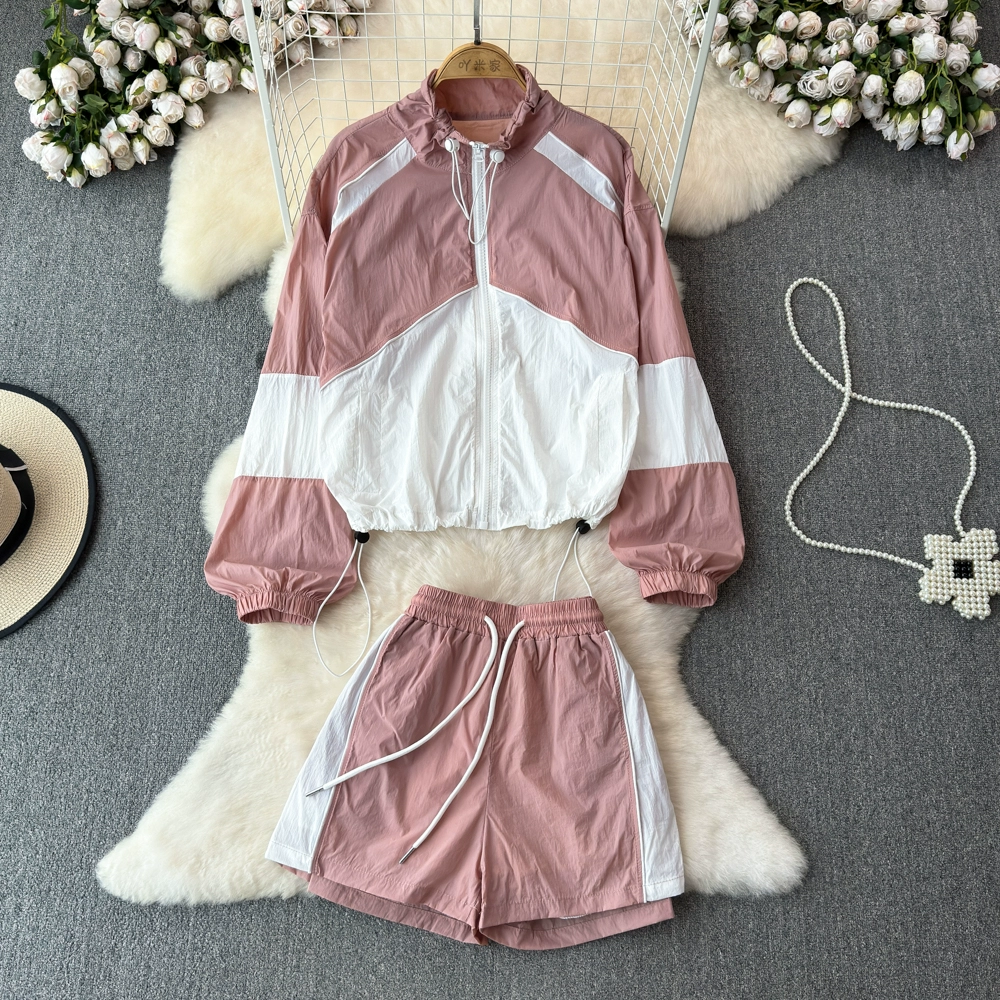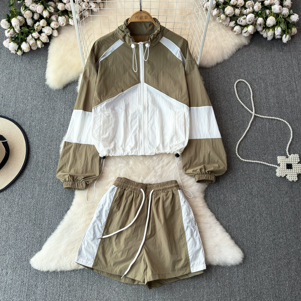 | nameOriginal | Casual sports color matching suit for women summer seaside vacation sun protection breathable clothes jacket wide leg shorts two piece set |