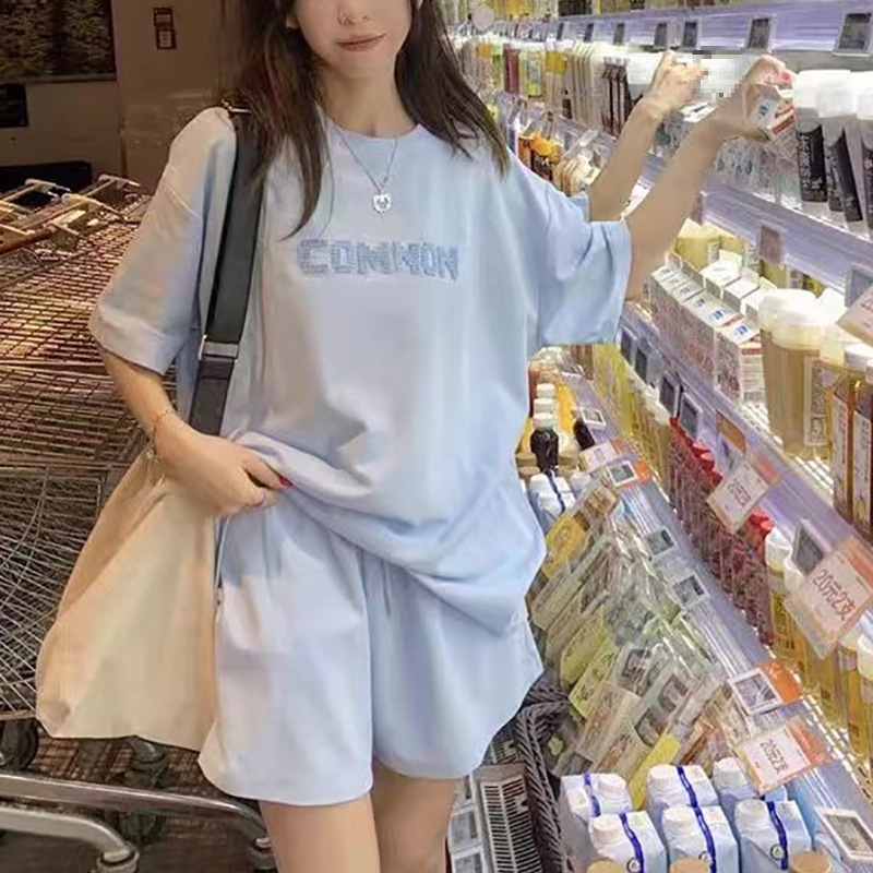Casual Sports suit Trendy Women’s Summer New Loose Slimming Short-sleeved T-shirt High Waist Wide-leg Shorts Two-piece Set