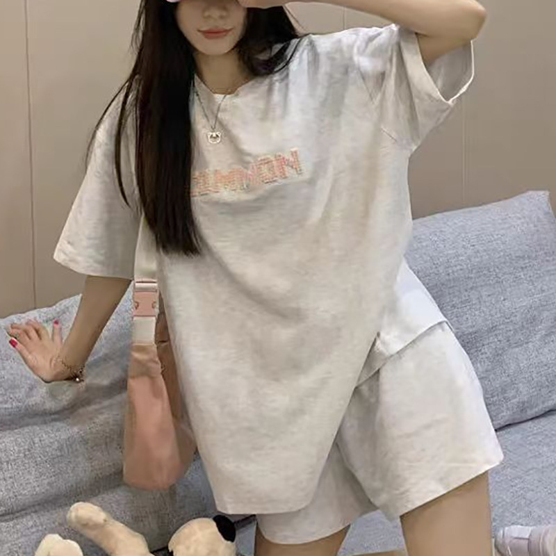 Casual Sports suit Trendy Women's Summer New Loose Slimming Short-sleeved T-shirt High Waist Wide-leg Shorts Two-piece Set