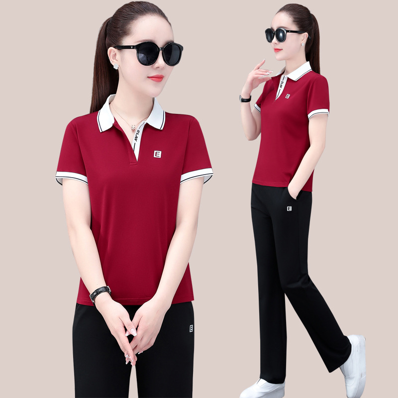 Casual Sports Suit Women's 2022 Summer New Loose Lapel Trousers Slim-fit Slimming Stylish Short-sleeved Two-piece Set