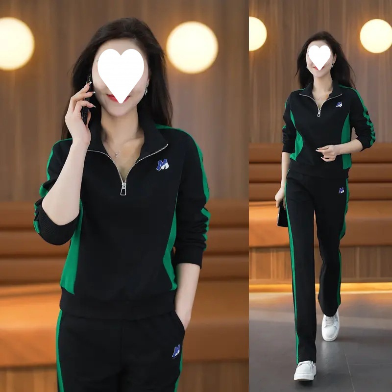 | nameOriginal | Casual sports suit women's spring and autumn 2024 new fashion Western style slimming stand collar sweater wide leg pants two-piece suit |