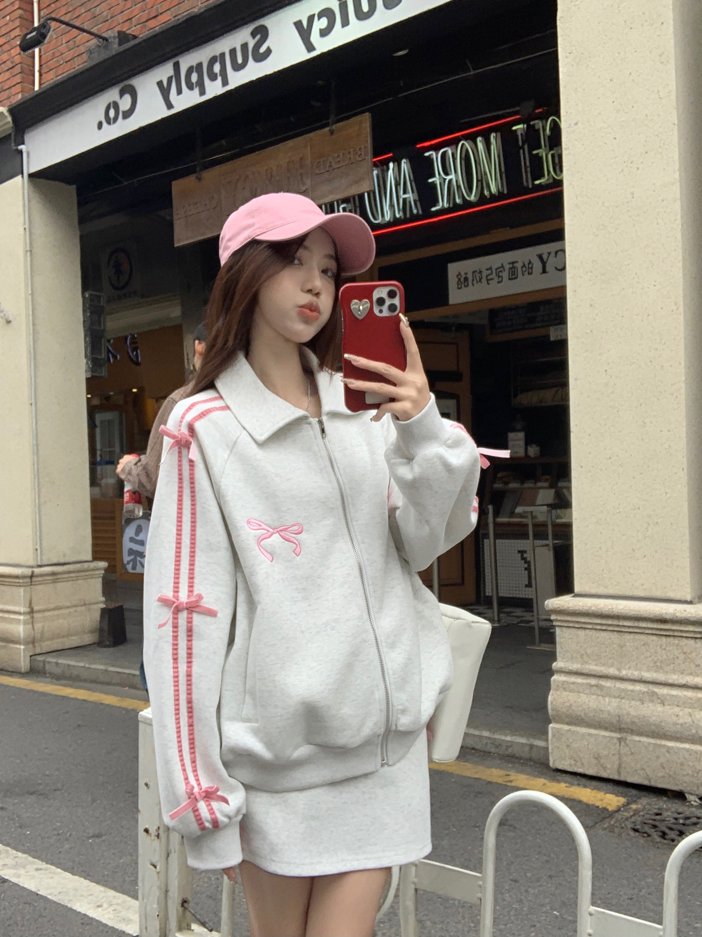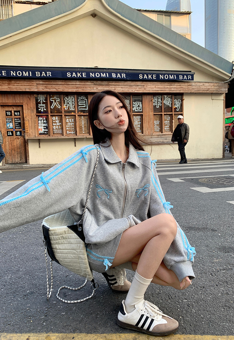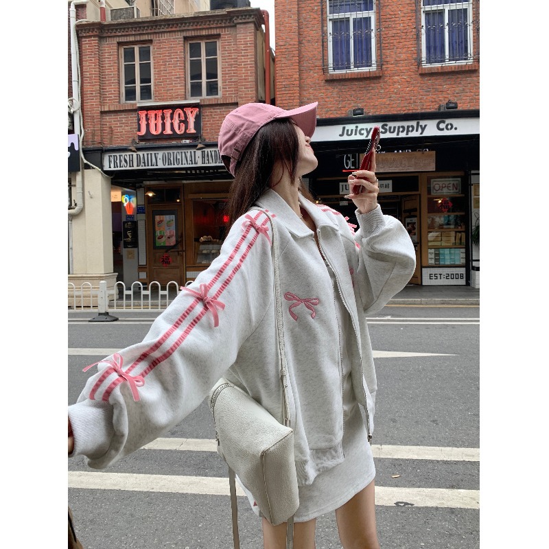| nameOriginal | Casual sports suit women's sweater coat top spring new skirt preppy style bow two-piece set |