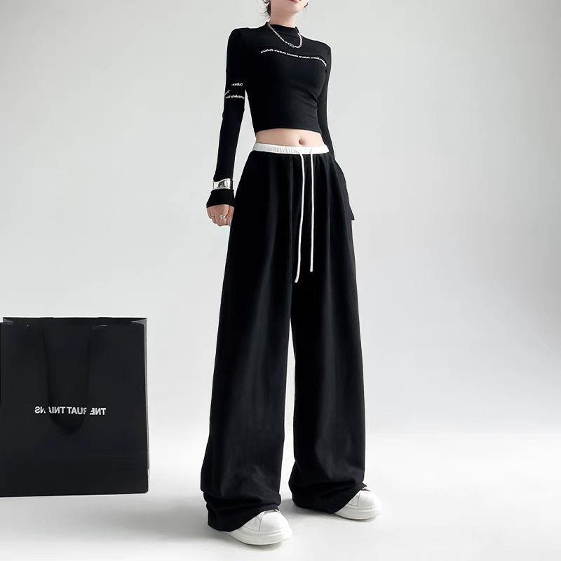 Casual Straight Pants Loose American Black Sports Pants Women's Spring and Autumn New Long Wide Leg Pants