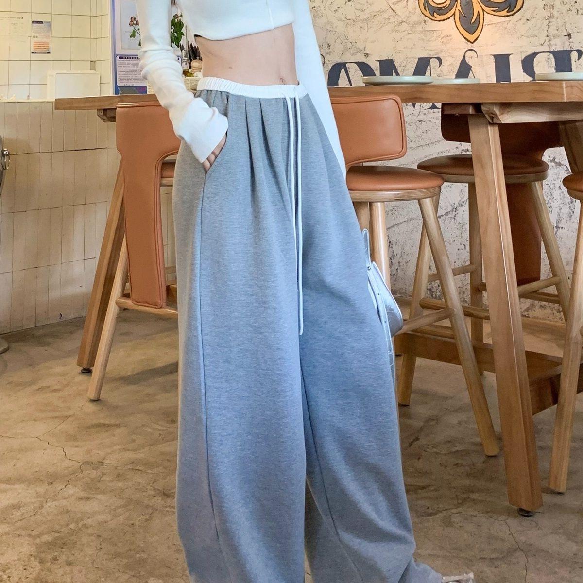 Casual Straight Pants Loose American Black Sports Pants Women’s Spring and Autumn New Long Wide Leg Pants
