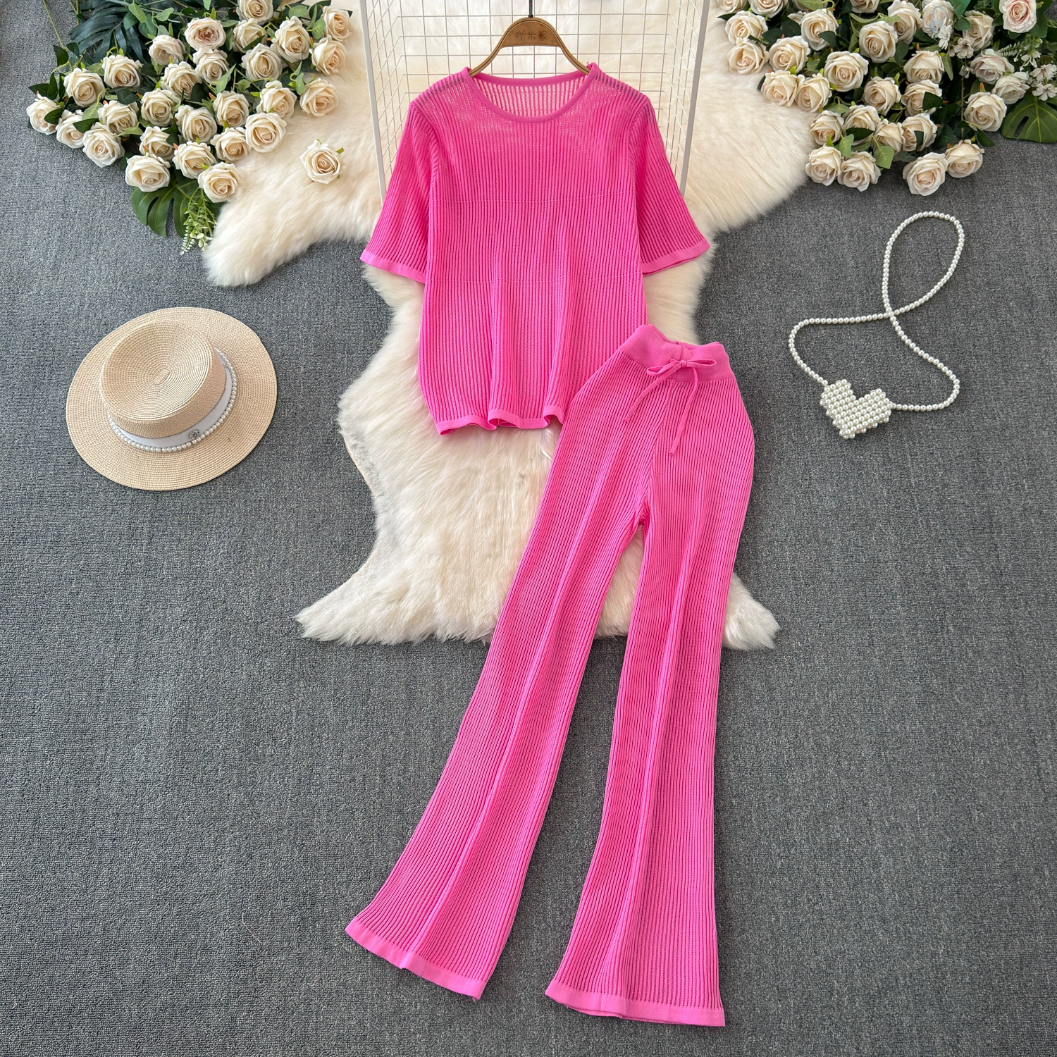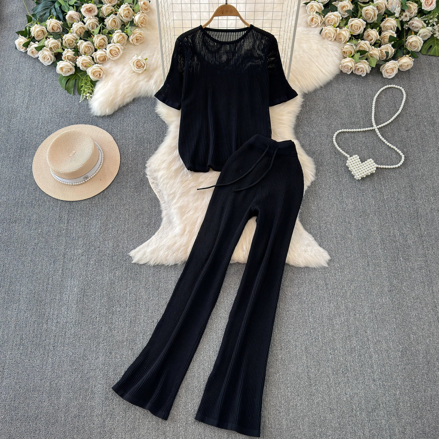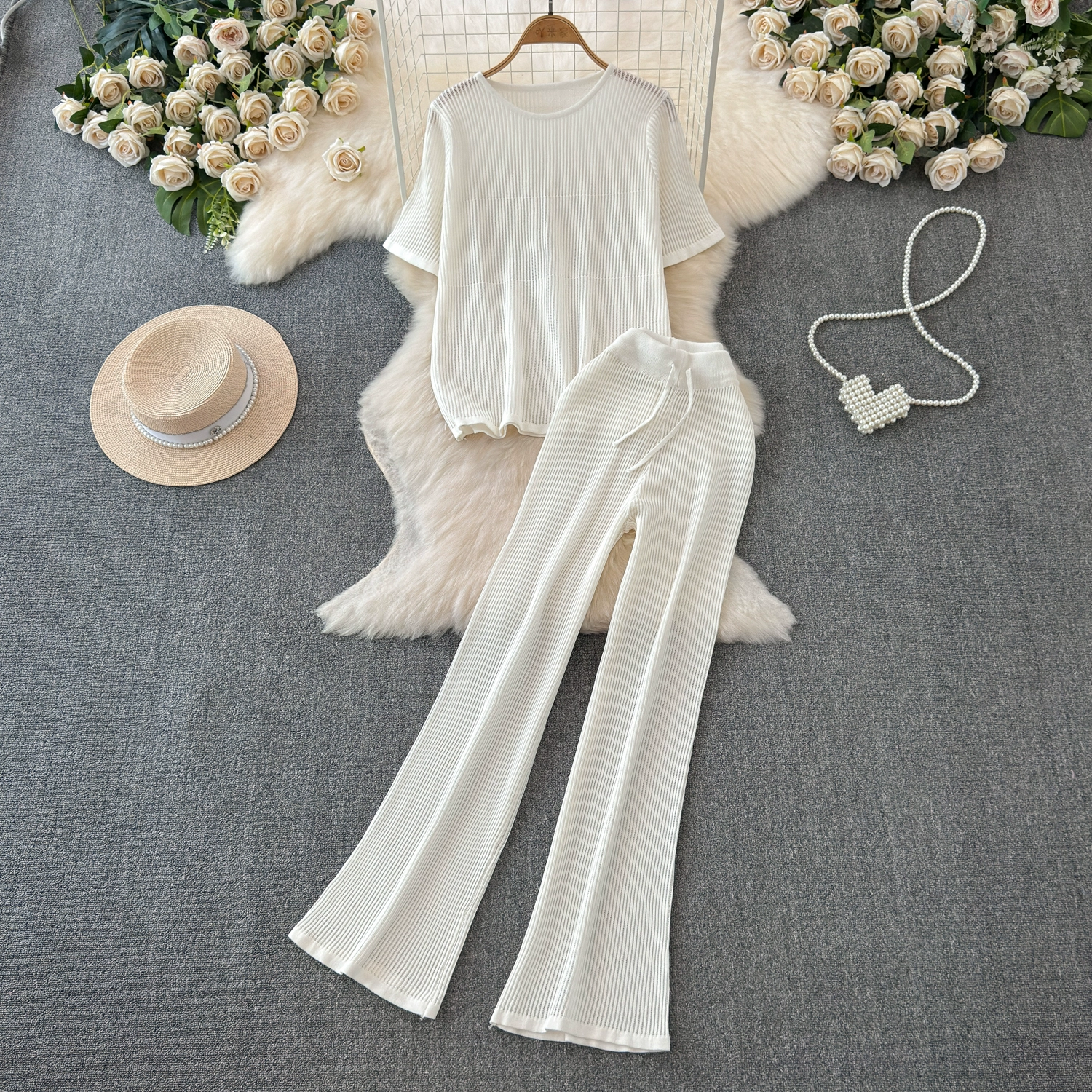 | nameOriginal | Casual suit for women 2024 new summer style temperament round neck T-shirt top + high waist slimming wide leg pants two-piece trendy set |