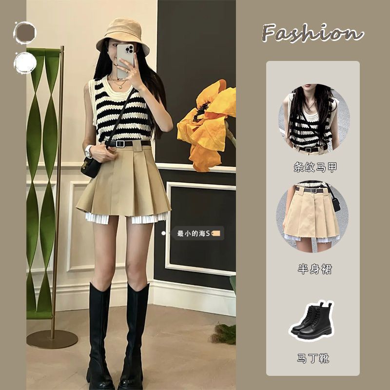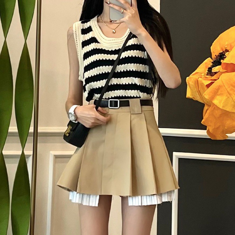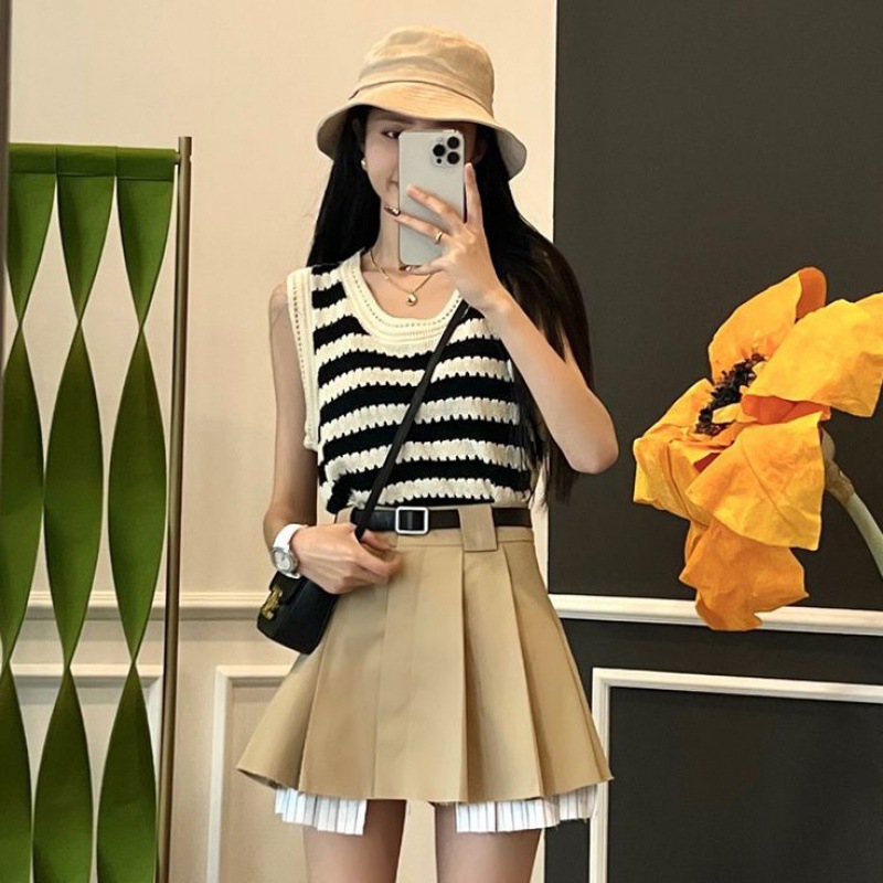 | nameOriginal | Casual suit Women's Summer Fashion Korean Style Slimming Sweet Spice Girl Stylish Striped Vest Pleated Skirt Two-piece Set |