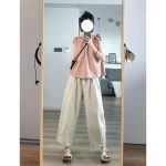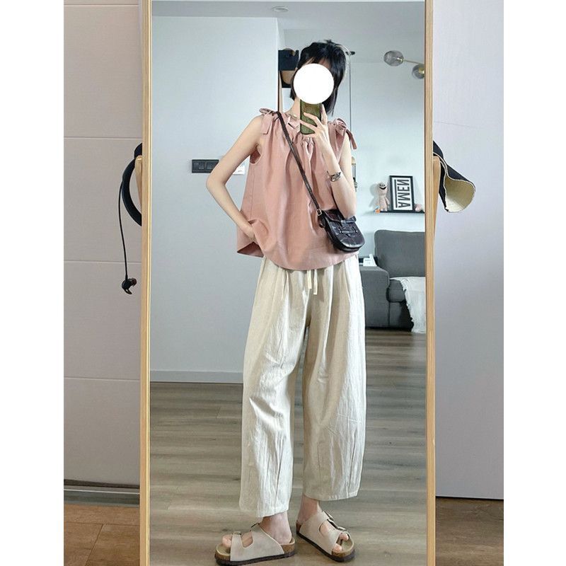 | nameOriginal | Casual Summer suit Women's Pink Top Sleeveless Design Retro Light Apricot Ankle-length Pants Explosive Two-piece Set |