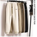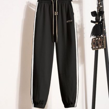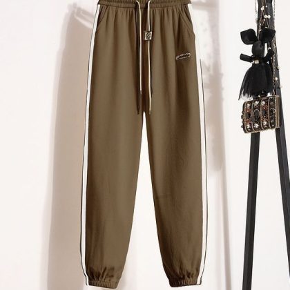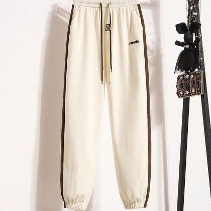 Casual sweatpants women’s 2023 fashionable contrast color ankle-tied sweatpants high waist slimming sports pants drawstring spring and autumn loose