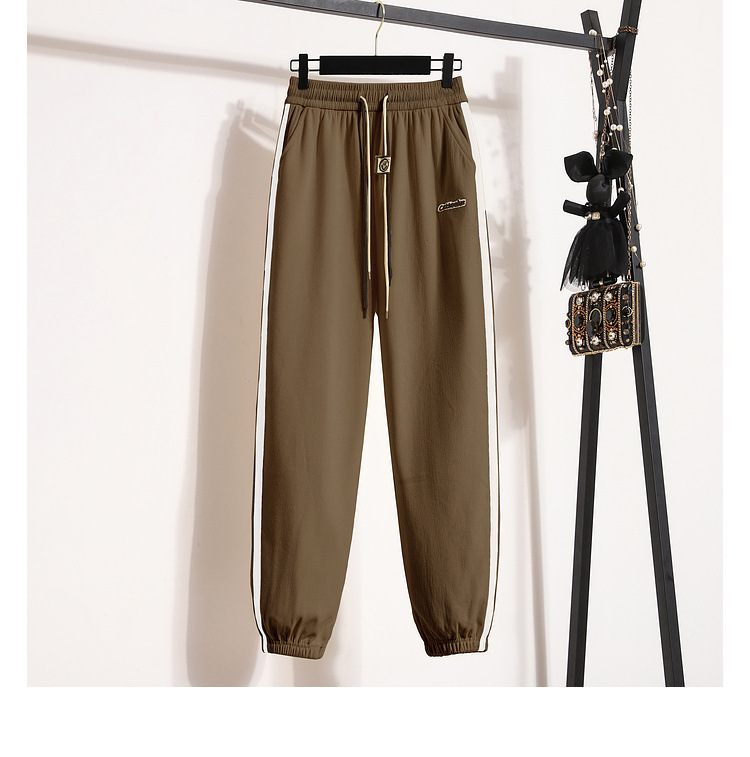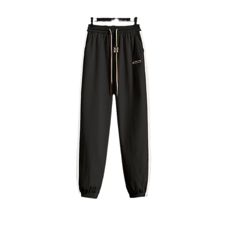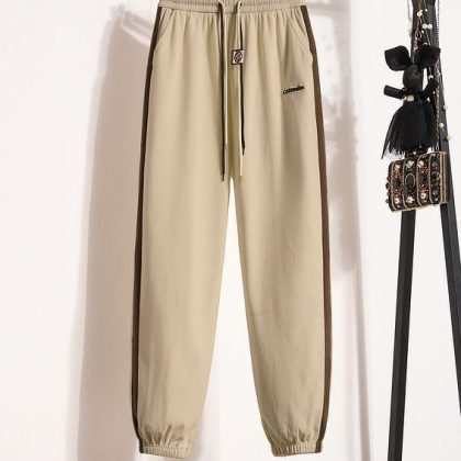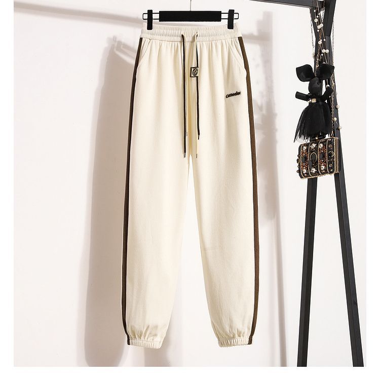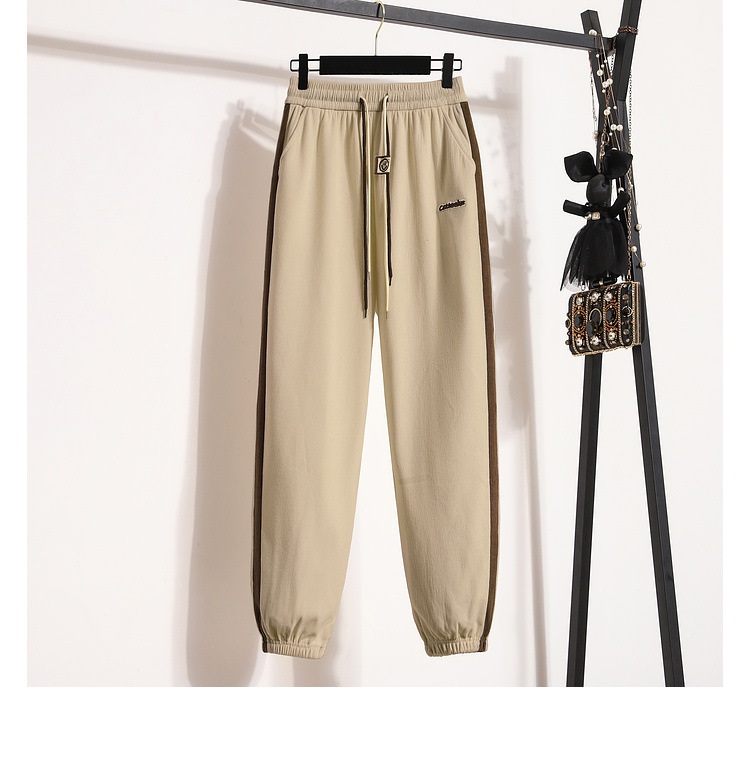 Casual sweatpants women's 2023 fashionable contrast color ankle-tied sweatpants high waist slimming sports pants drawstring spring and autumn loose