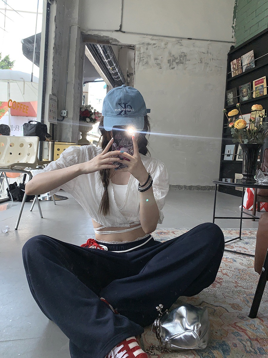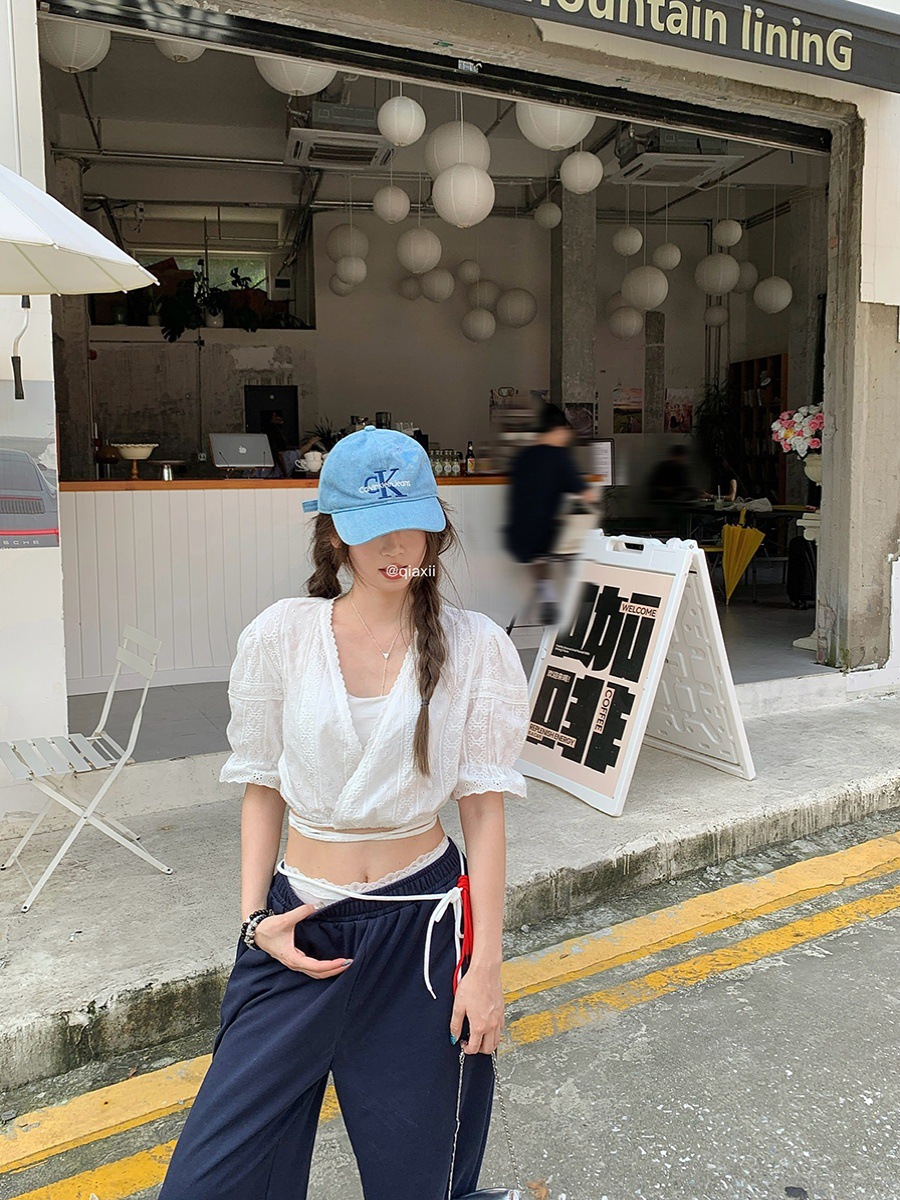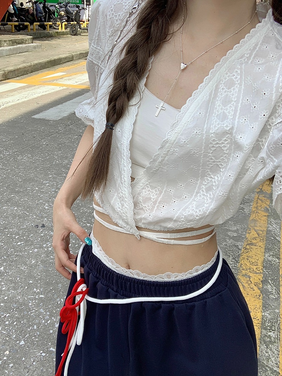 | nameOriginal | Casual Western Style suit Women's Summer 2024 New Cross V-neck Lace Shirt Leggings Three-piece Set |