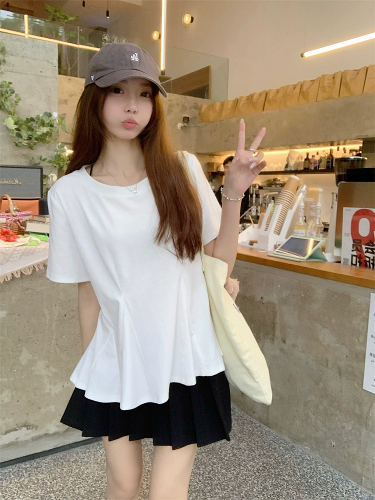 Casual white summer high-end round neck short-sleeved T-shirt