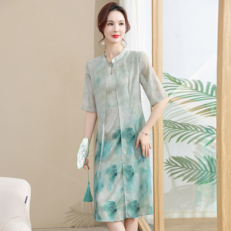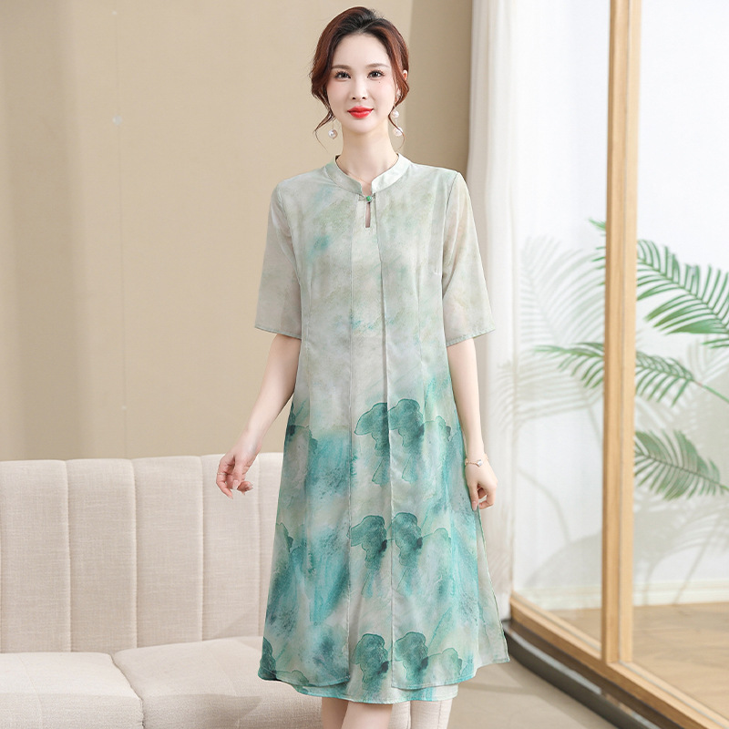 | nameOriginal | Casual Women's Summer Belly Covering dress Middle-aged Loose Slimming Over-the-Knee Mid-length Skirt Mother's dress |