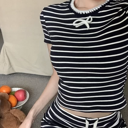 | nameOriginal | Casual women's summer home wear two-piece set with bow |