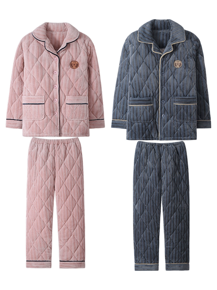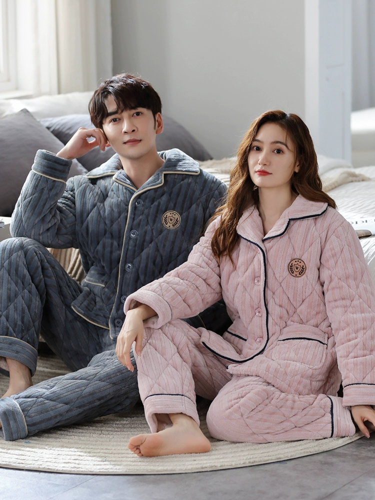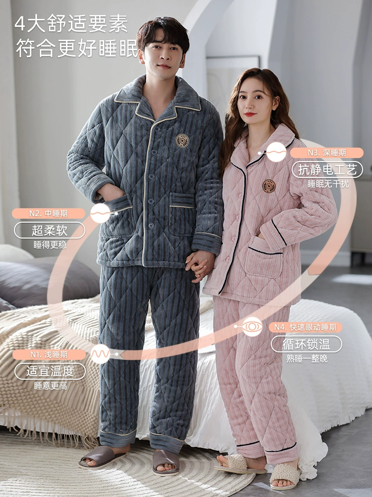 | nameOriginal | Cat couple pajamas winter quilted women's flannel plus velvet thickened men's coral velvet home wear set winter |