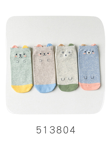 Cat Department Groceries 4 pairs in gift box with cute cat cartoon animal boat socks cute soft cute ears short socks for women
