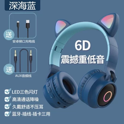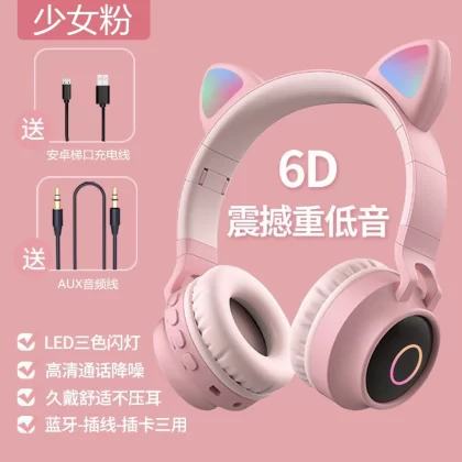 nameOriginal | Cat Ear Headphones Head-mounted Bluetooth Headphones Demon Dance Chicken Game Girls Cute Fire Wire Girl Glowing Wheat |