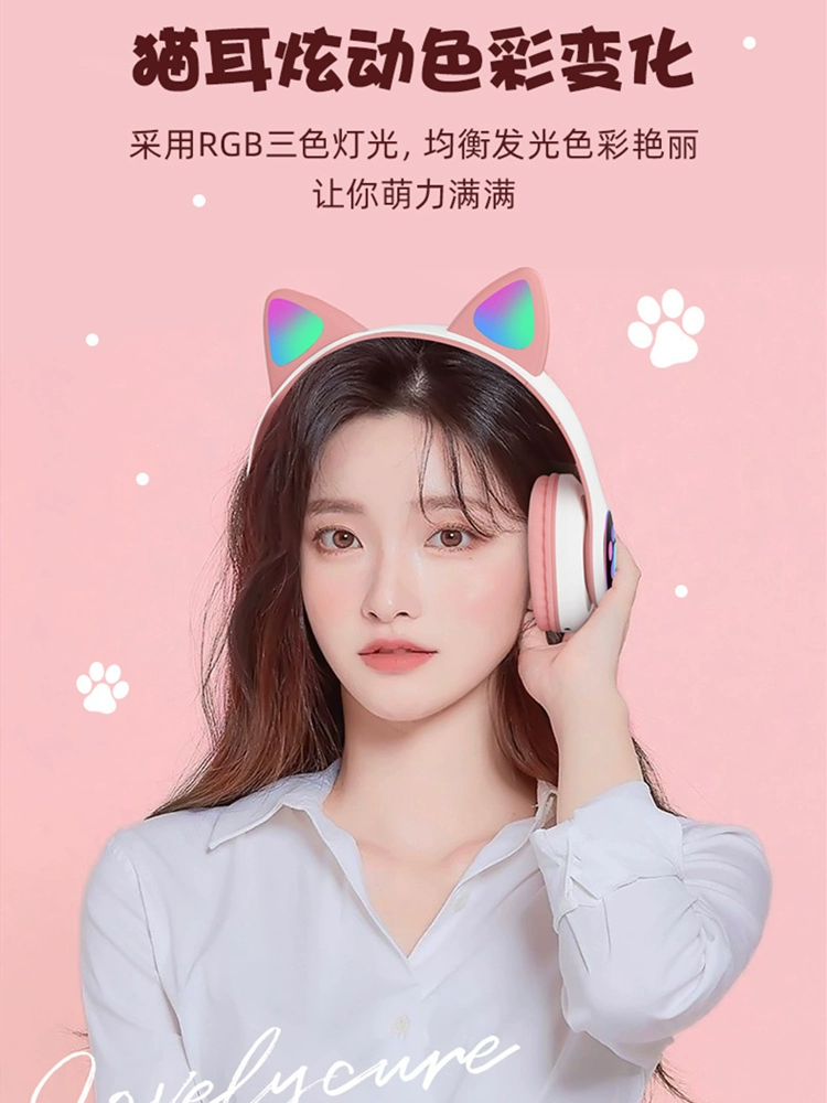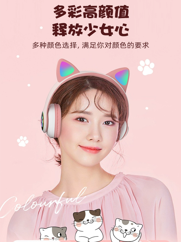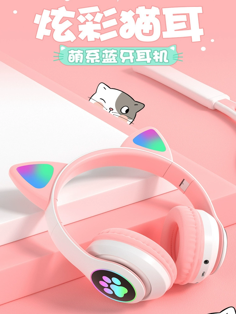 | nameOriginal | Cat ear headphones, head-mounted Bluetooth headset with mic and chicken game, colorful and glowing girly heart, cute and super cute headset |