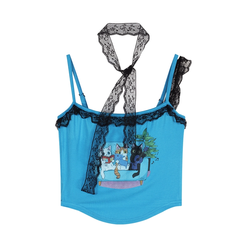 | nameOriginal | Cat print blue slim fit lace patchwork suspender belt |