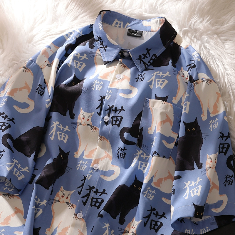 | nameOriginal | Cat printed loose casual couple short-sleeved shirt |