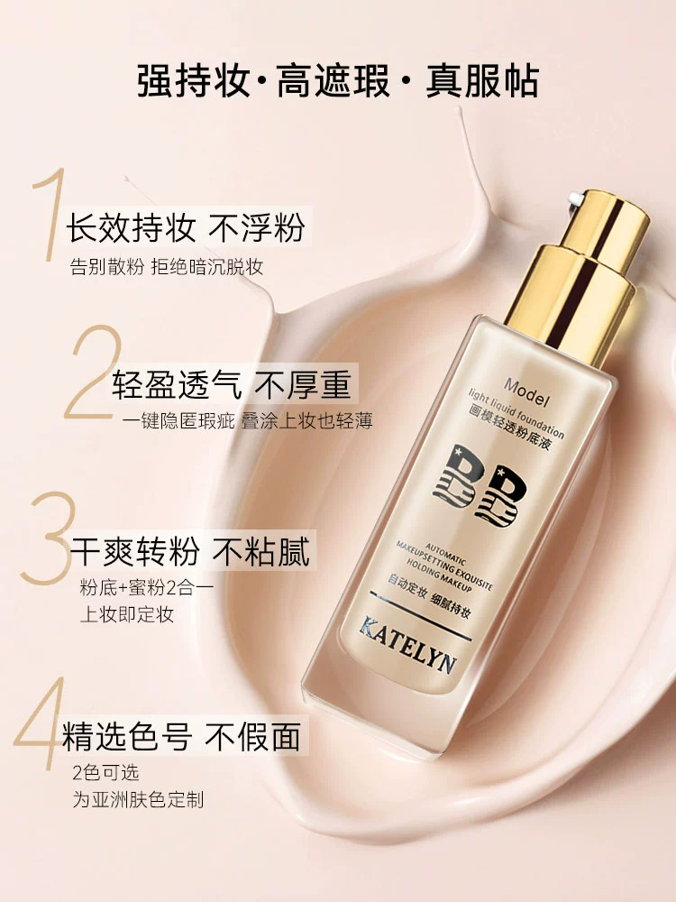 Catalina liquid foundation, light and transparent BB cream, anti-sweat and long-lasting makeup, suitable for sensitive skin, natural concealer, long-lasting and does not remove makeup