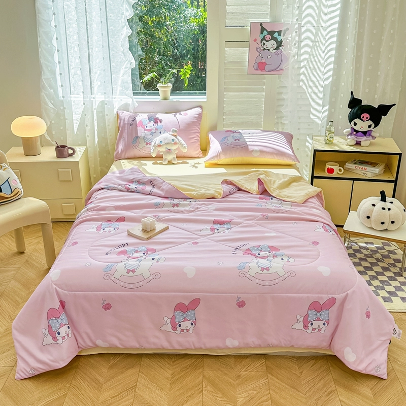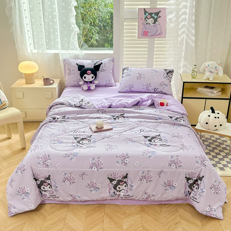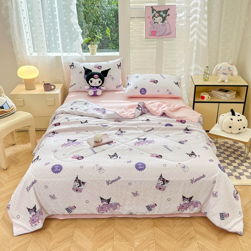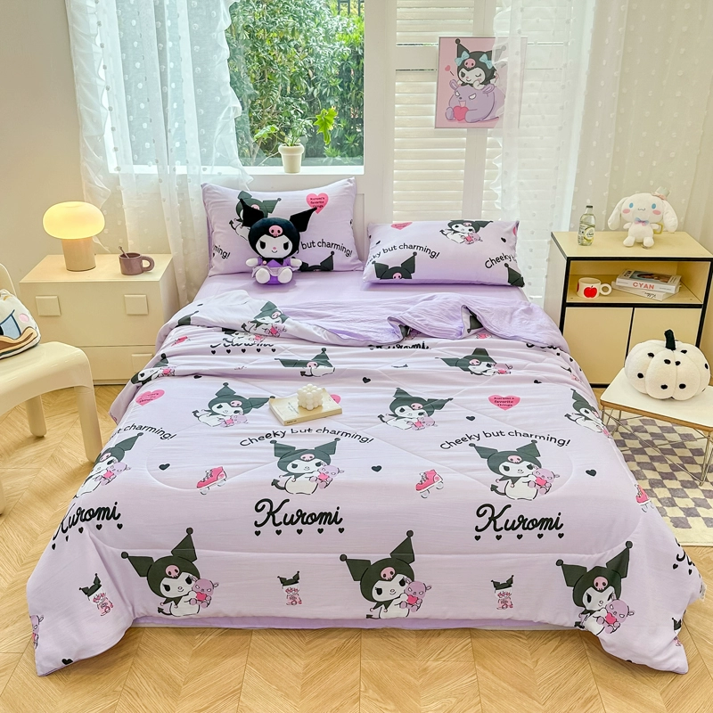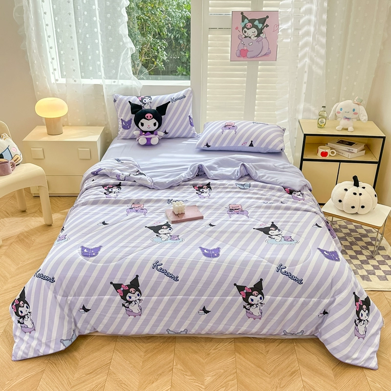 Category A Kuromi summer cool quilt four-piece student dormitory single and double foldable machine washable air-conditioned quilt thin quilt